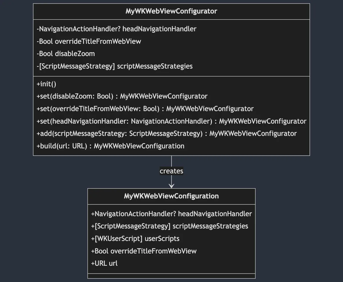 结合前面的 Builder Pattern MyWKWebViewConfigurator 从外部管理 ScriptMessageStrategy 的注册:
