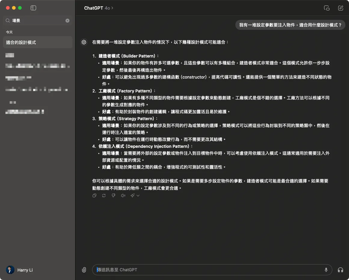自从有了 ChatGPT 学习 Design Patterns 设计模式的实务应用就更容易,只要把你的问题具体的描述给他,问他有哪些设计模式适合这个场景,他都能给出几个可能适合的模式并且附上说明;虽然不是每个答案都那么适合,但他至少给出了几个可行方向,我们只要再深入这几个模式结合自己实务场景的问题,最后都能选到不错的解法!
