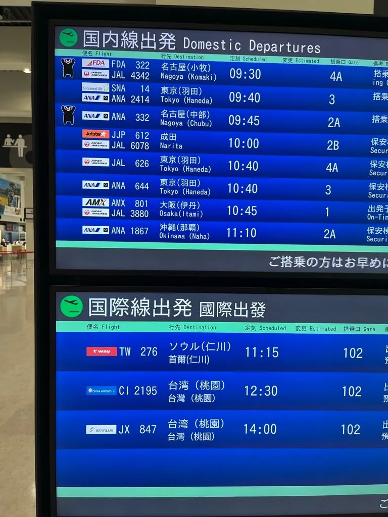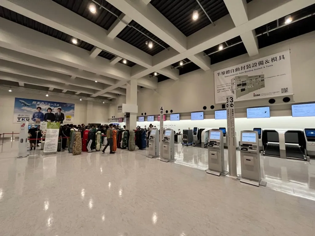 阿苏熊本机场(KMJ) 很新很小,班次也不多;国际线今天就三班而已,国际线只有三个柜台,所有轮流使用。