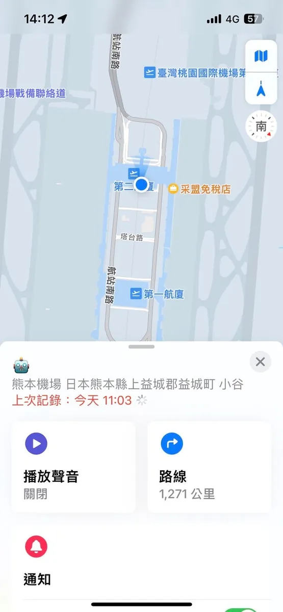 提领行李的时候,可能因为太早托运;等了一下才来,顺便实验了 Airtag 寻找功能,行李接近的时候有叫!