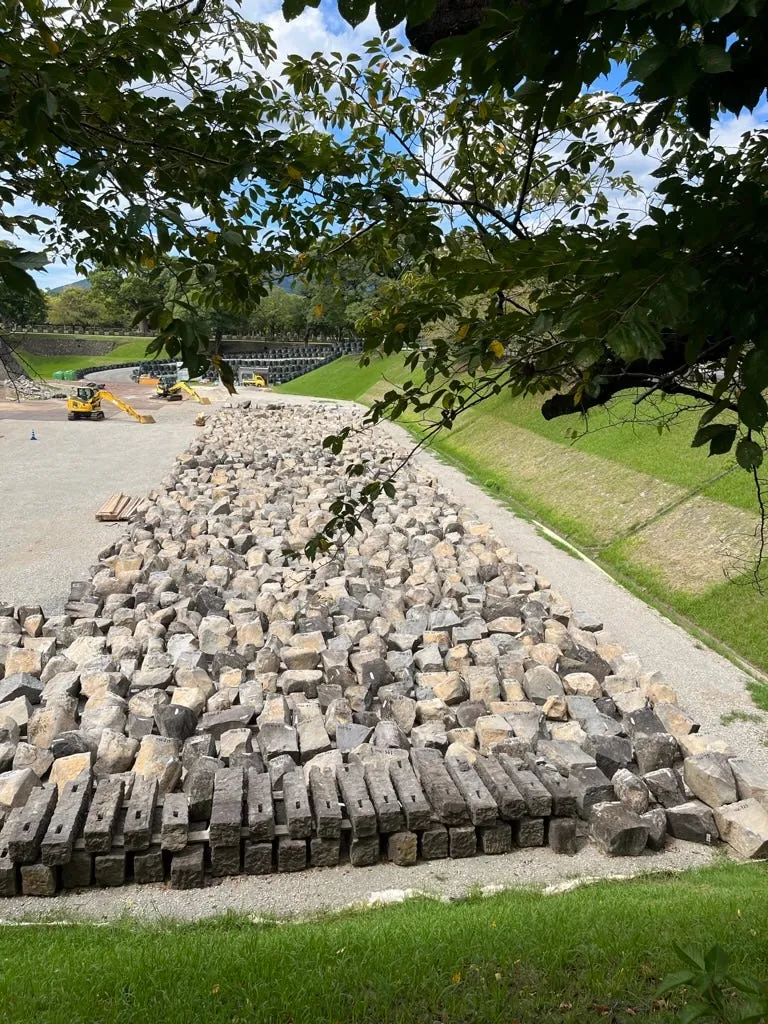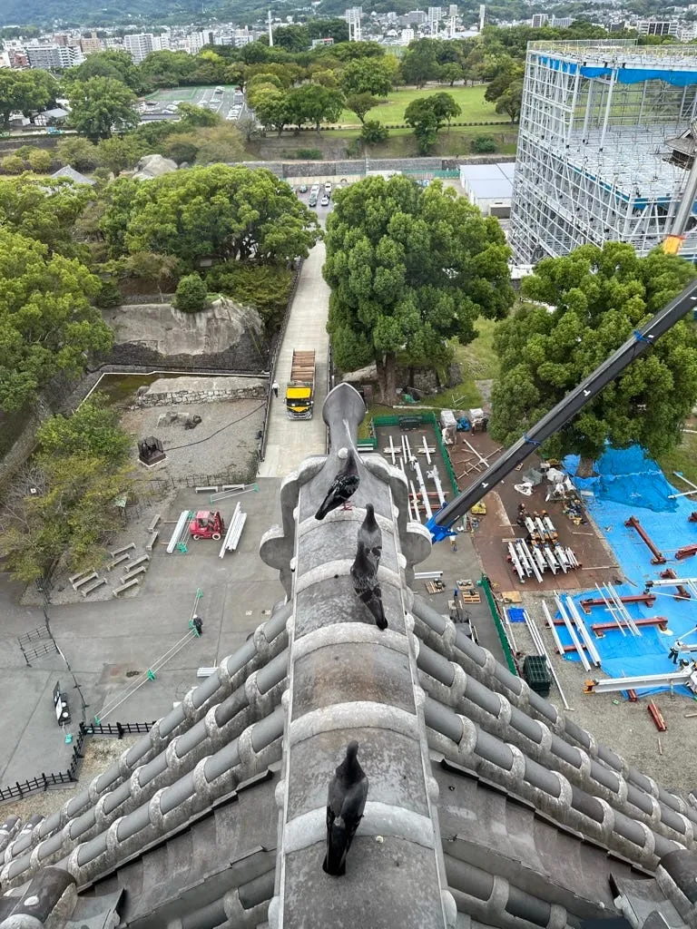 看到这山坡往上拐进去就是加藤神社了,也可以看到第一天从天守阁看后面在维修的地方,还有很多散落的城墙要逐一恢复。