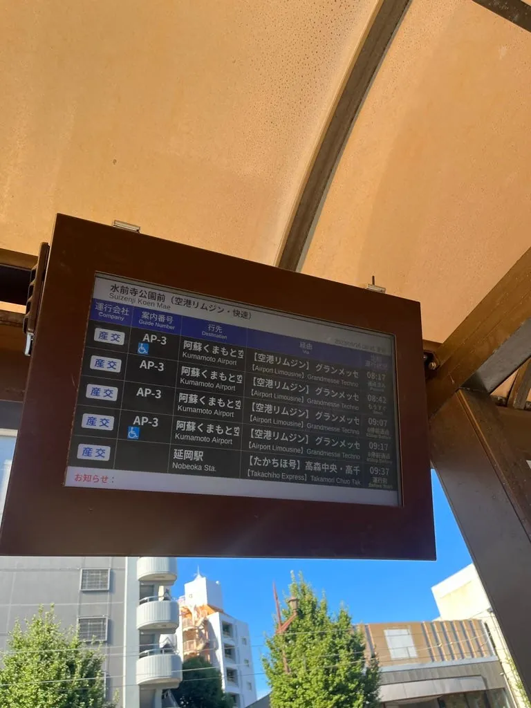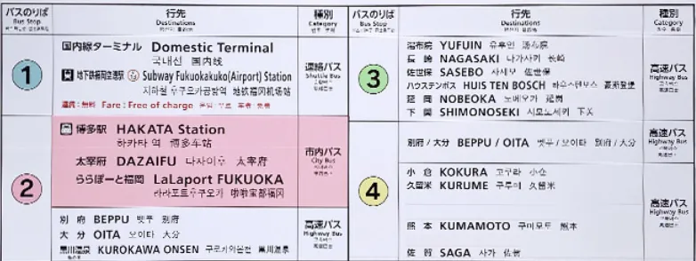 出机场后可以看到一个指示牌,告知要去的方向&在哪个站牌等车;除了到博多也能到其他地方,可参考 此篇文章 或 官网 ;如果要去远的地方记得查好班次。