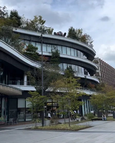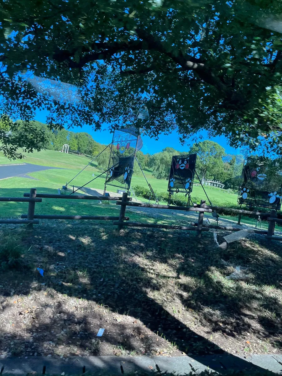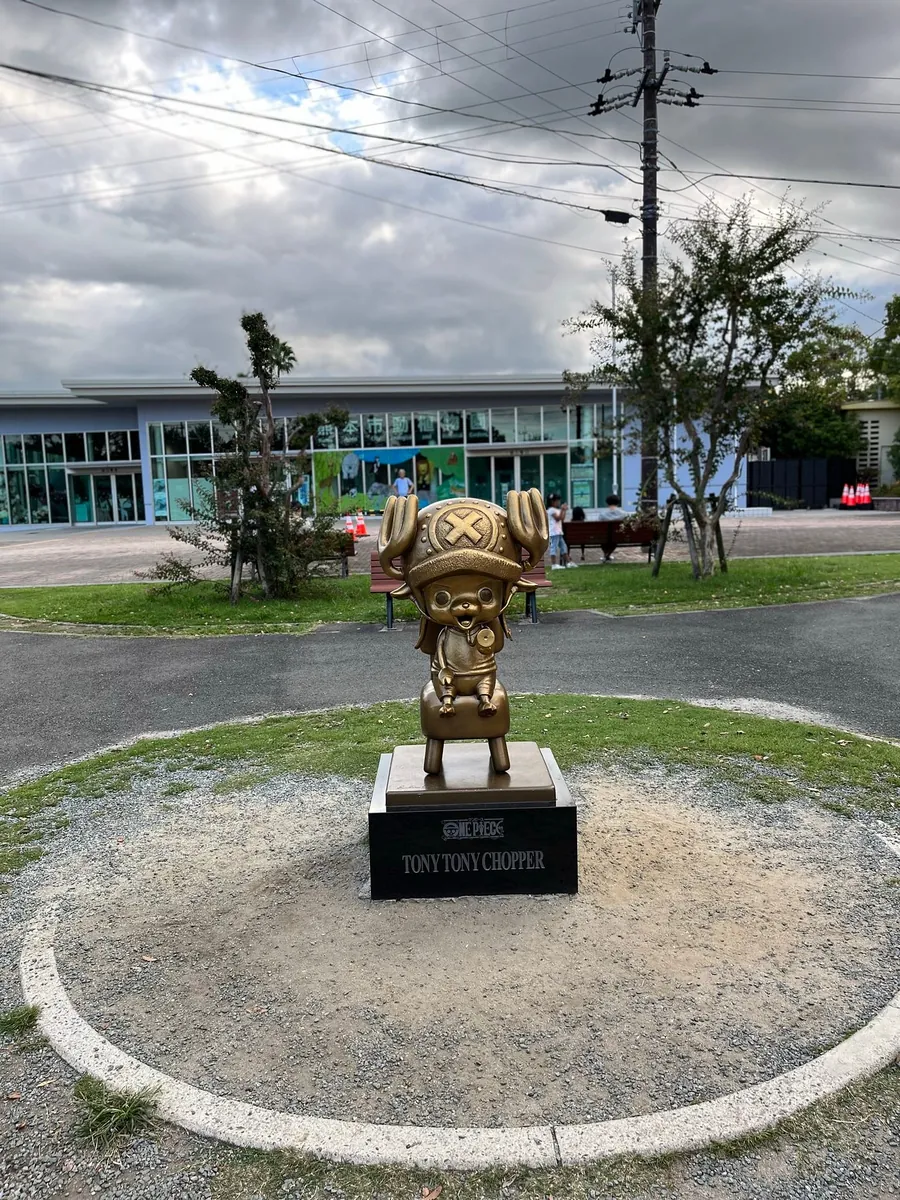 这边没有公车直达,都要走一小段(约 15 分钟);离开神社后继续往「熊本动物园」方向走(约 20–30 分钟),找乔巴铜像。