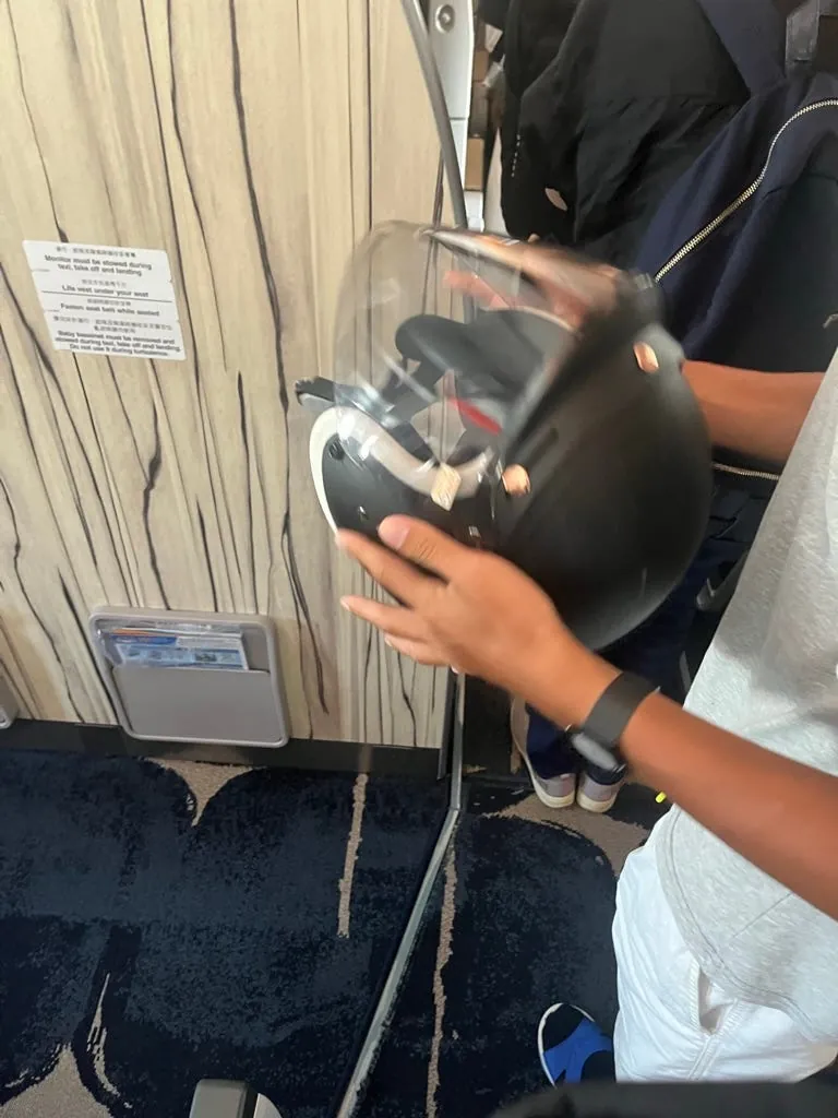 下飞机的时候发现前面的人带了一顶安全帽,是骑机车来坐飞机吗 🤣