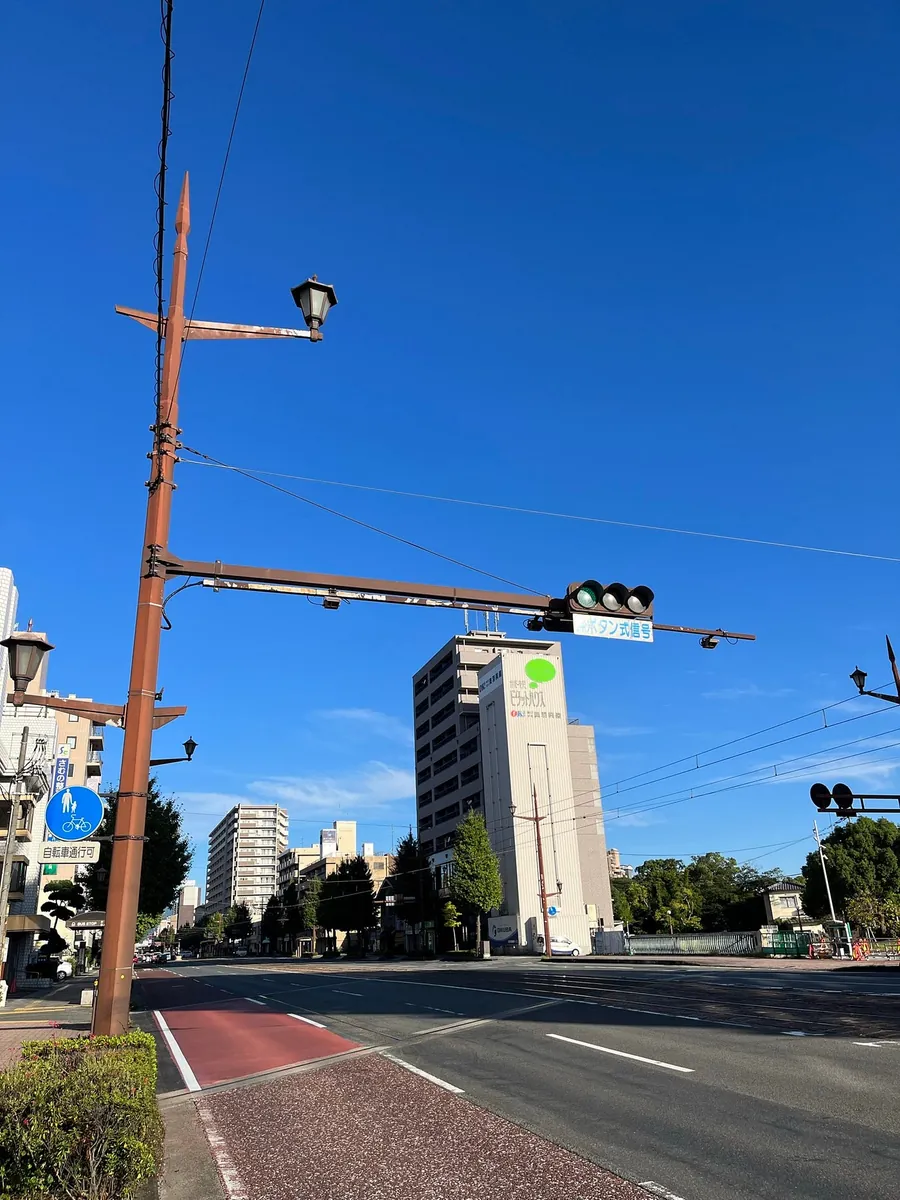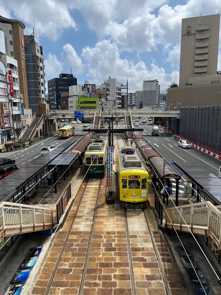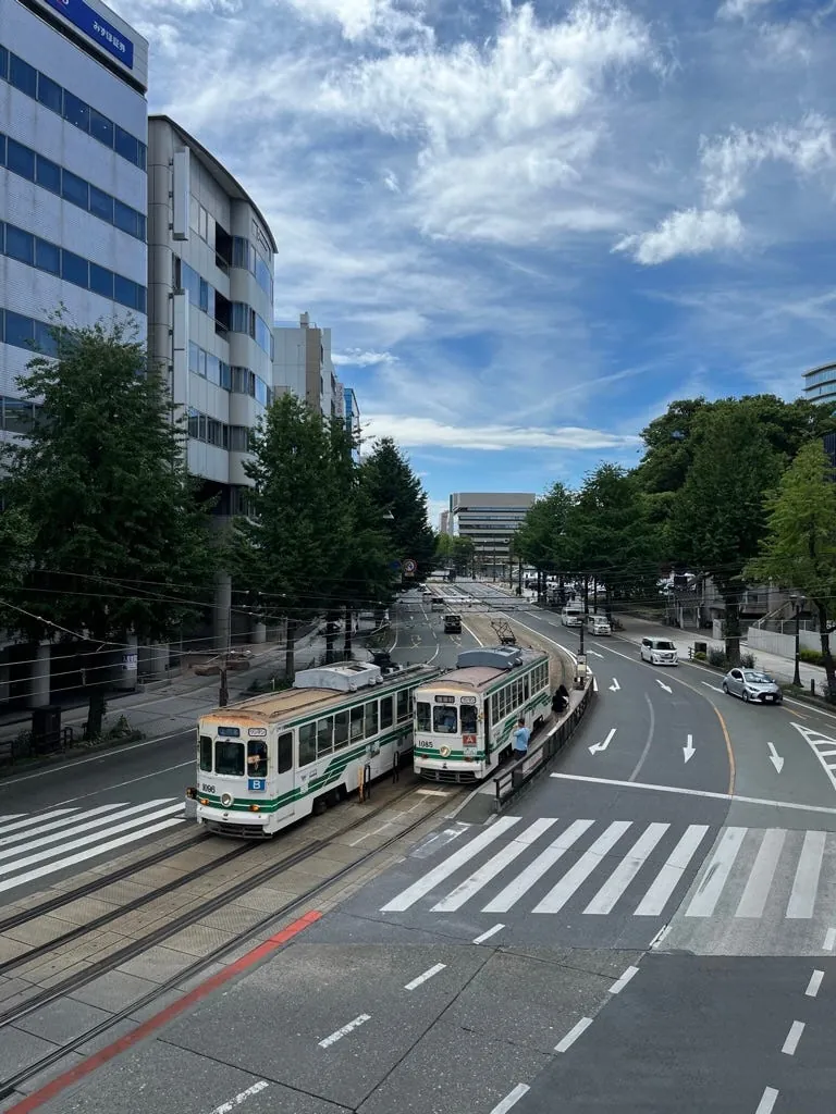 市役所出来再往樱町购物中心方向走,会经过一个天桥,是一个很好的拍景地点,可以拍熊本路面地铁。
