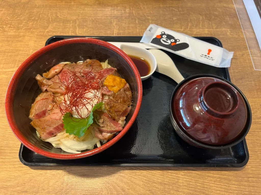 回樱町购物中心逛街,再吃一次宫崎牛配熊本产的啤酒;离开时买了一只熊本熊大福带回台湾做纪念(可爱)。