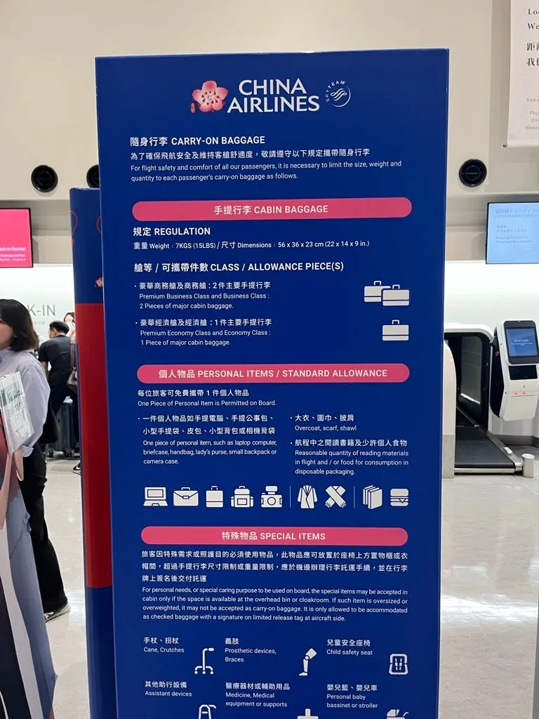 大约等到 10:20 才开放报到/托运,之前都搭长荣(可手提两件),这次搭华航才发现是手提一件,现场赶快压缩成一件。