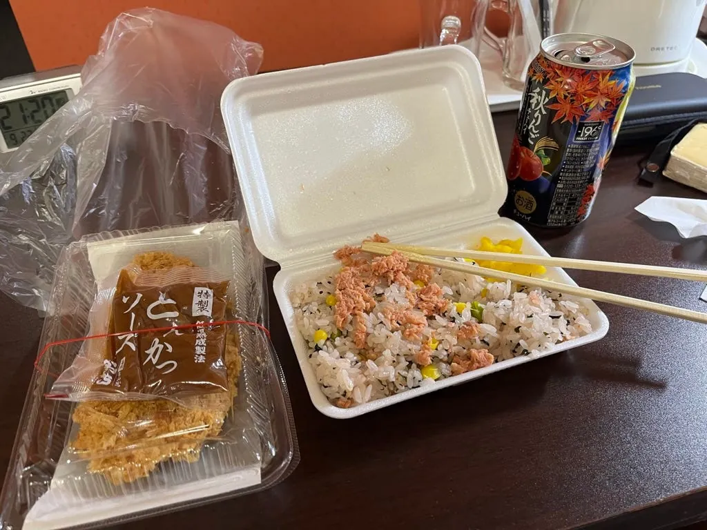 饭店小开箱,整体偏旧、灯光昏暗、隔音普普、冷气稍微有声音,但依然干净整洁;不过还是有点小后悔为什么不多加一些钱住同样在附近的 APA 连锁饭店。