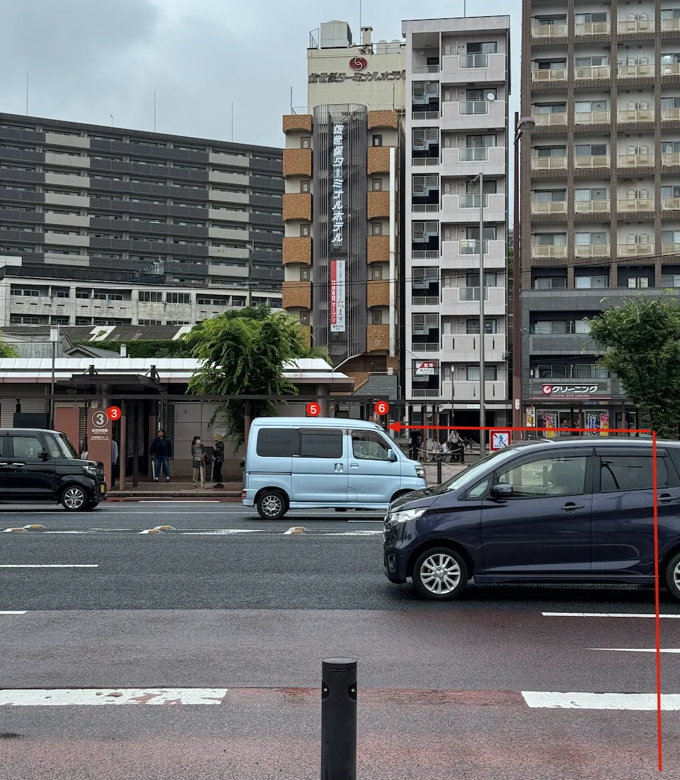 公车站一样排满人,跟上次一样跟著人群走路回到地铁唐人町站。(约 15 分钟)