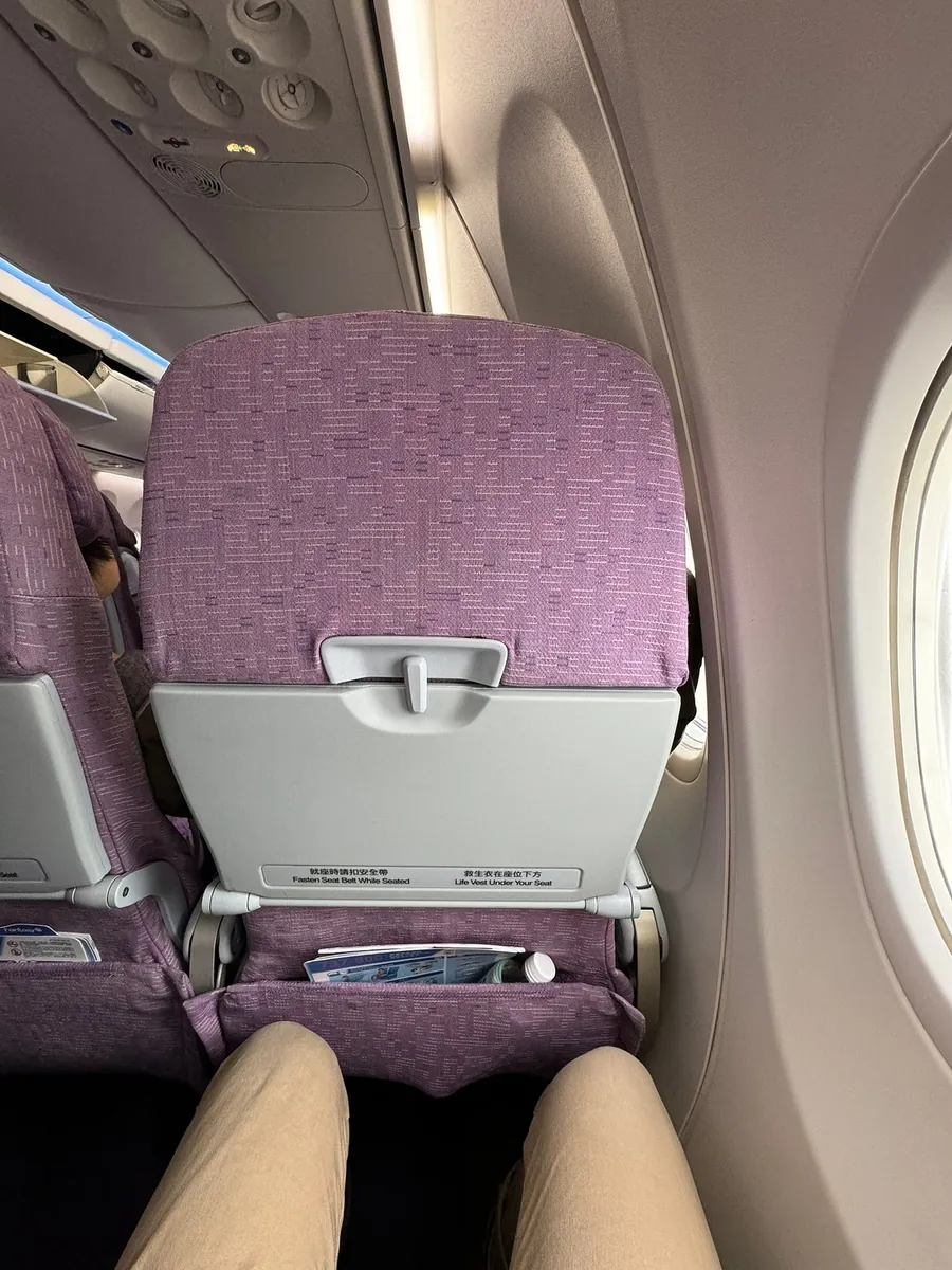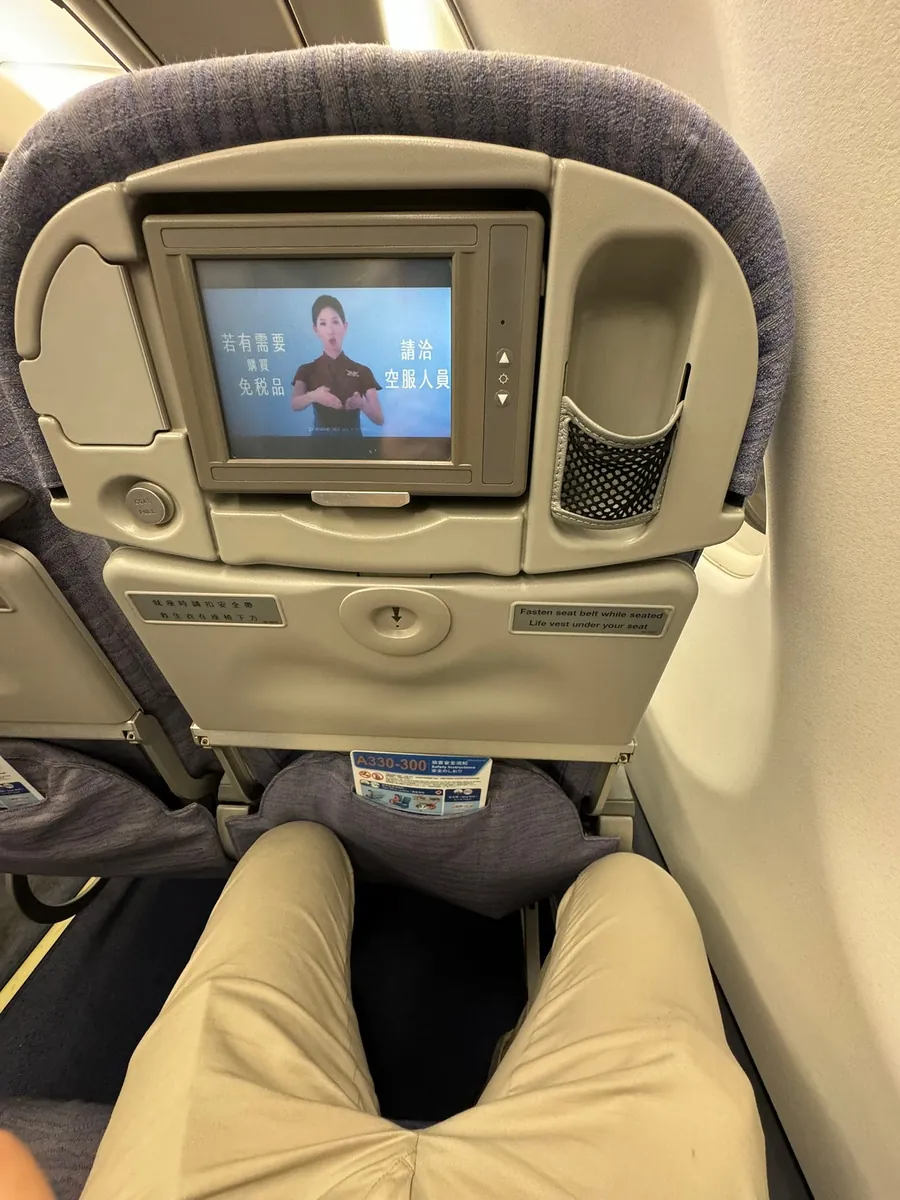 约 20:30 开始登机,这班没有特别检查手提行李一件的规定(但我早就全塞成一件了…),21:00 准备起飞,21:09 起飞,飞机是 A330–300 设备比较旧。