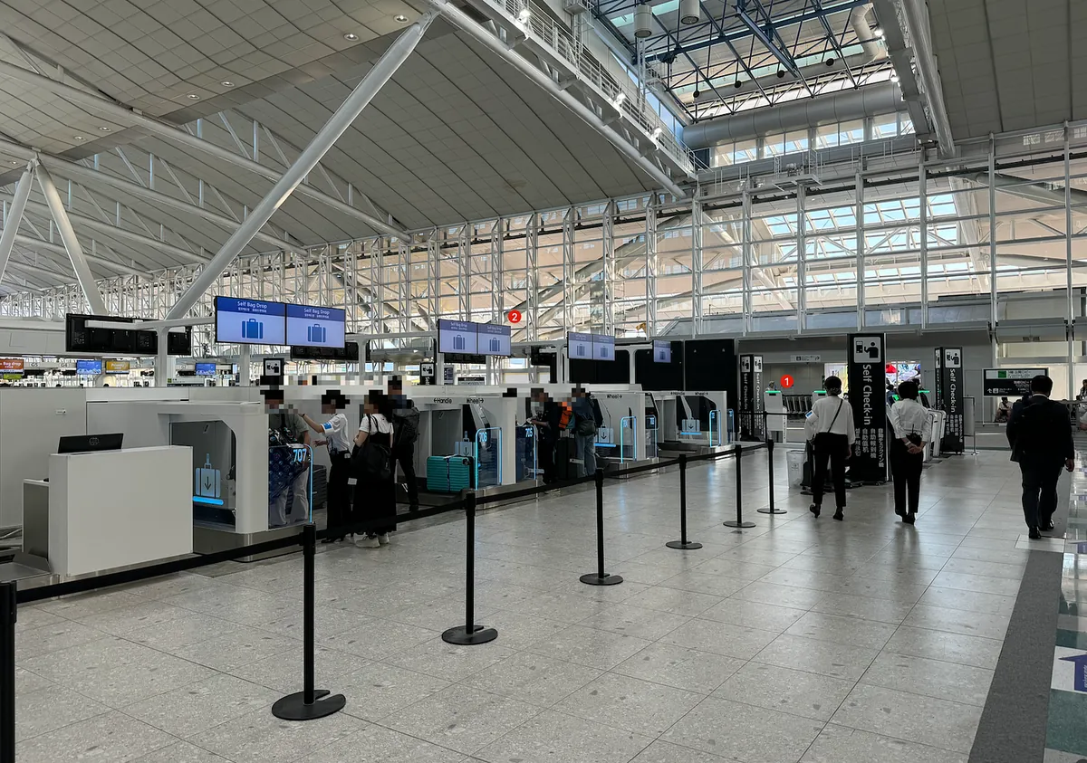 到机场的时间还太早,柜台还没开放,地勤人员指引我们先去 1 自助报到再去 2 自助托运行李,他们会从旁协助;很快就完成行李托运了(这次才 17 Kg)。
