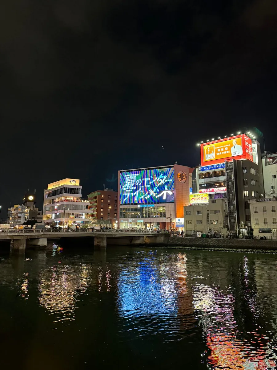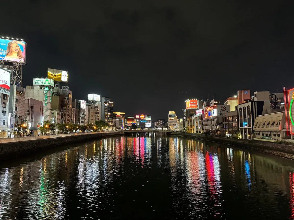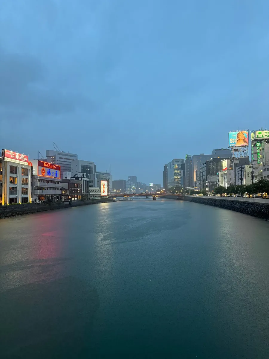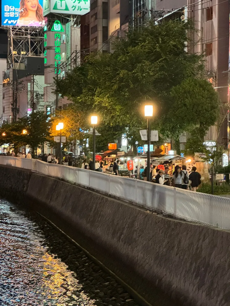 回饭店休息前,刻意在走道中洲屋台看离开福冈前的最后一眼夜景。