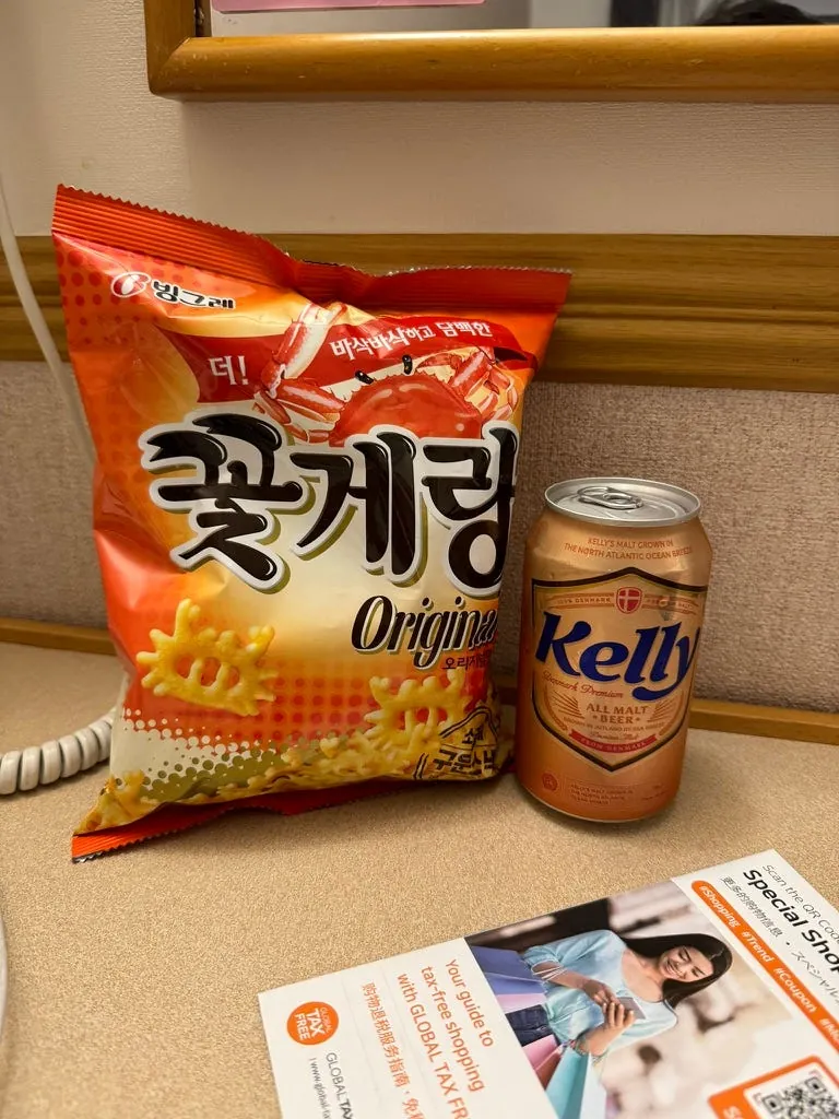 精品、化妆品免税店蛮完整的,店员也都会中文;伴手礼店也有(这里就有福砂屋长崎蛋糕);烟酒类免税店只有一家要排队、吃的跟超商更不用说了,直接排爆。