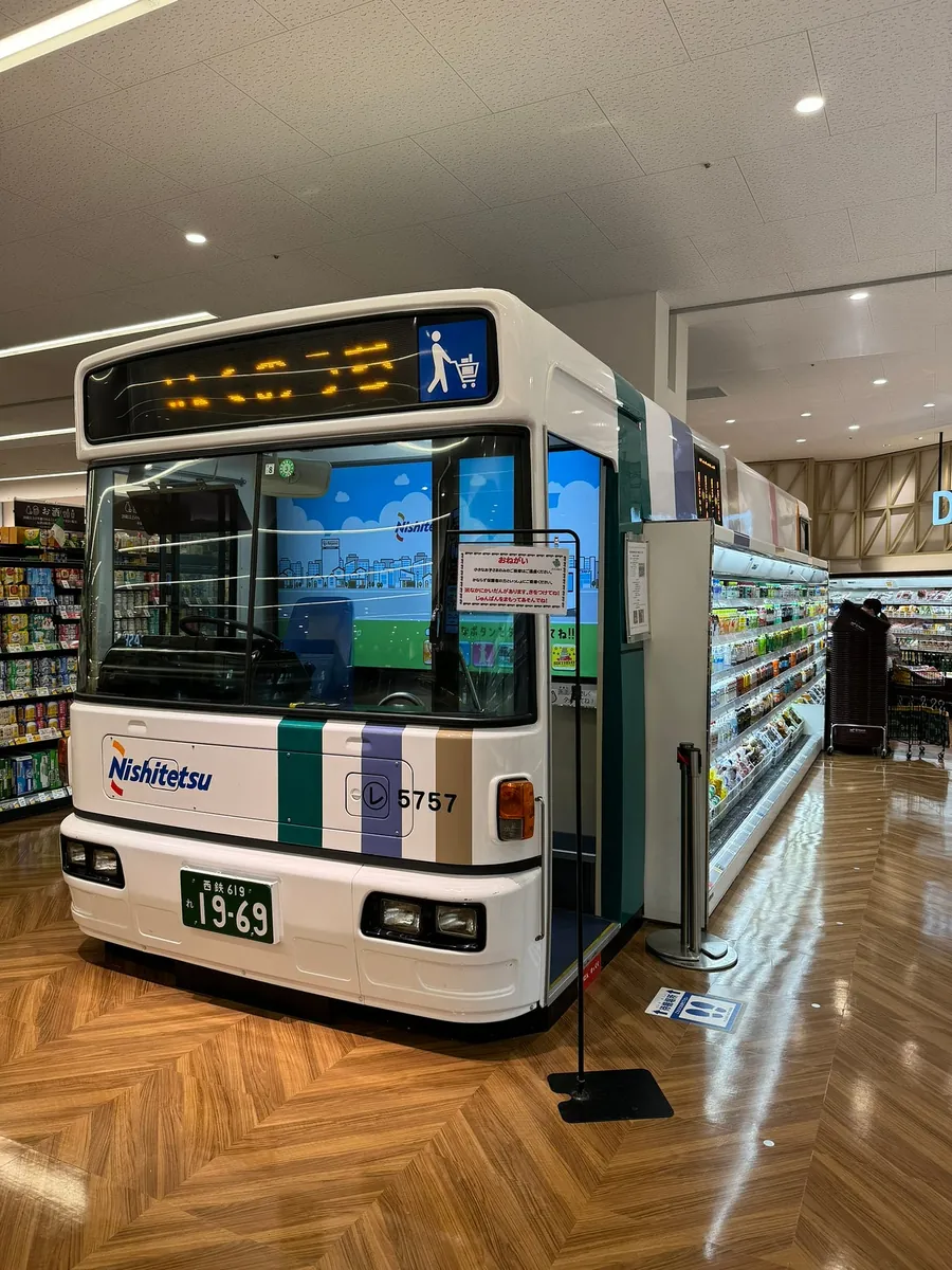 一楼超市有一台西铁公车改装的饮料柜,很酷XD。
