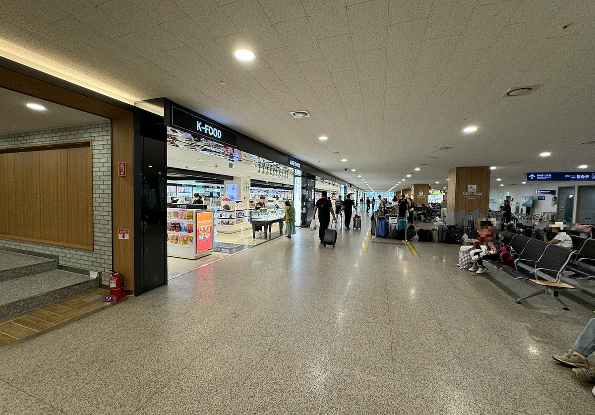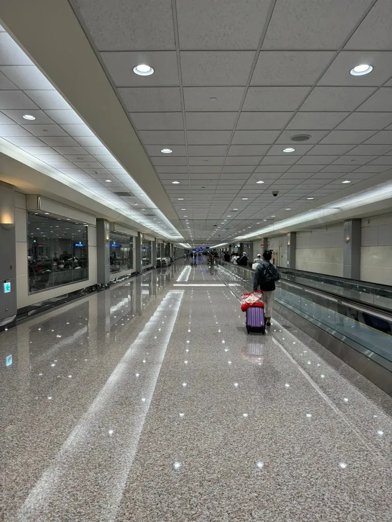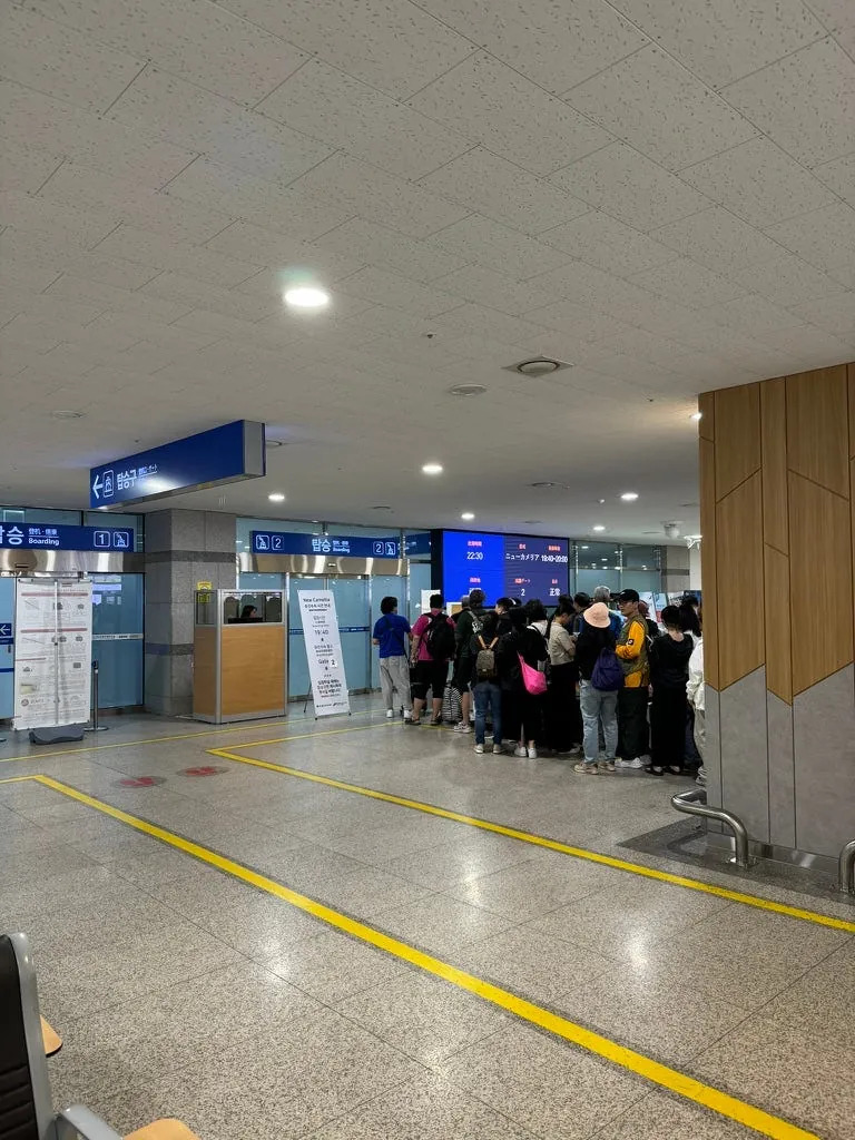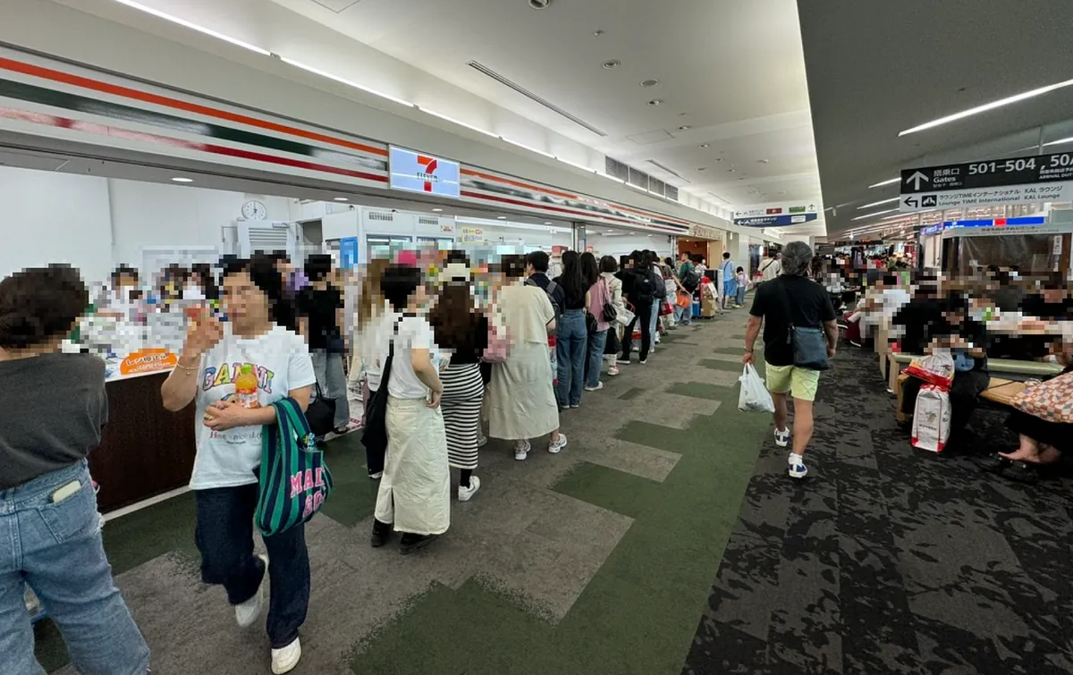 福冈机场出境的候机厅是狭长型的,人很多很多,非常混乱拥挤。(不知道是不是因为还在整修跟太多航班等待起飞的关系)。