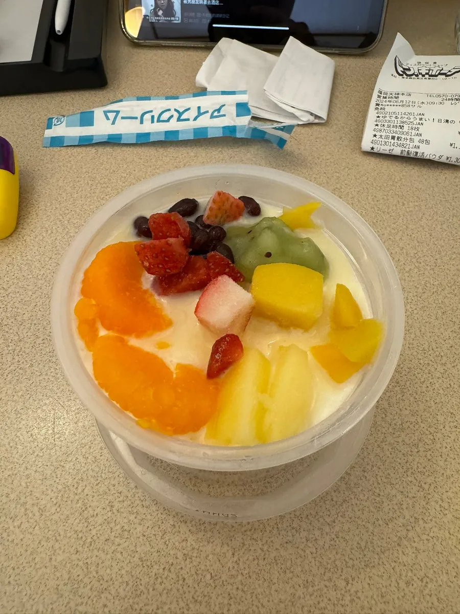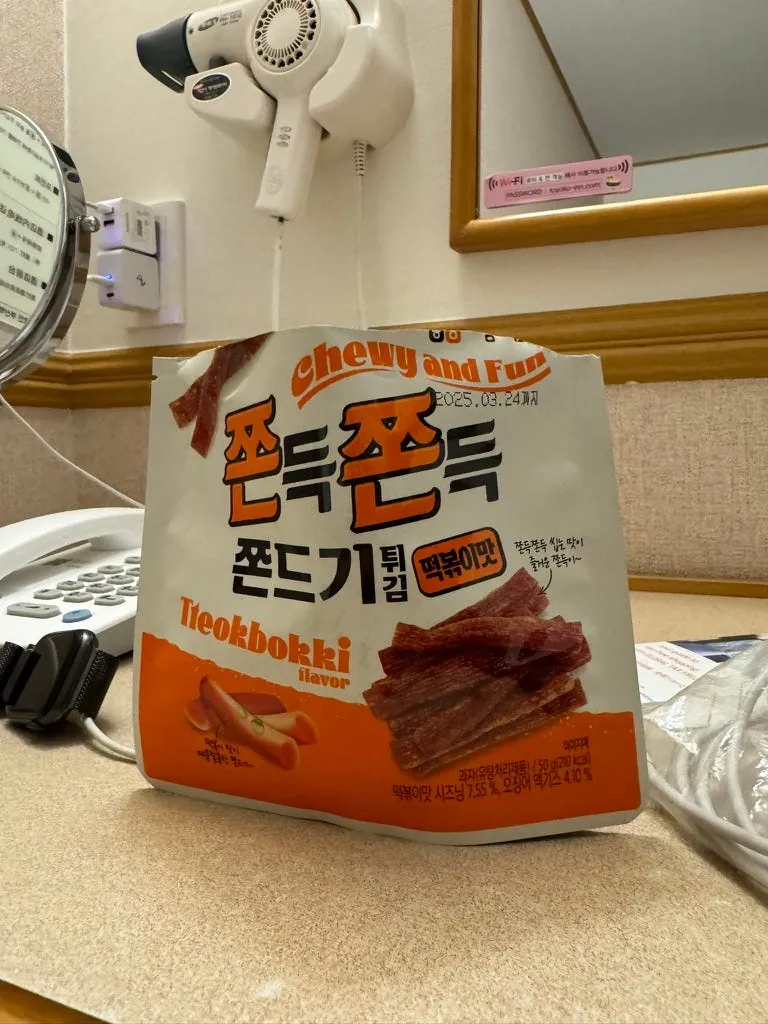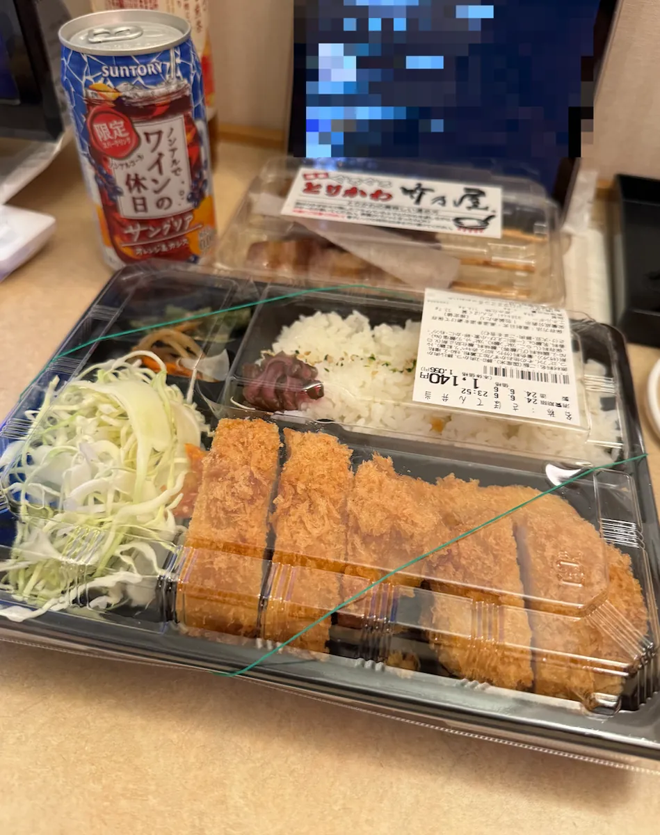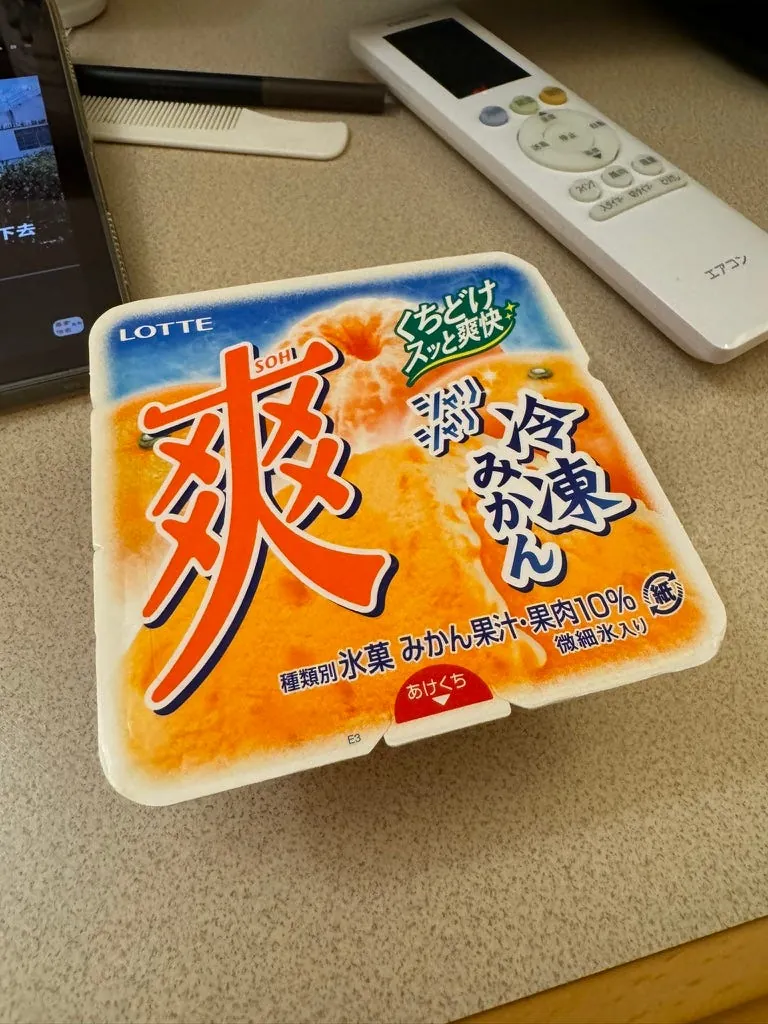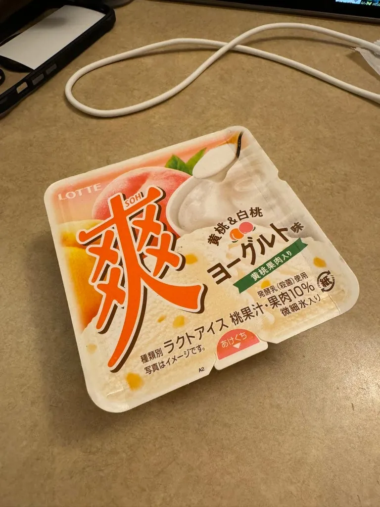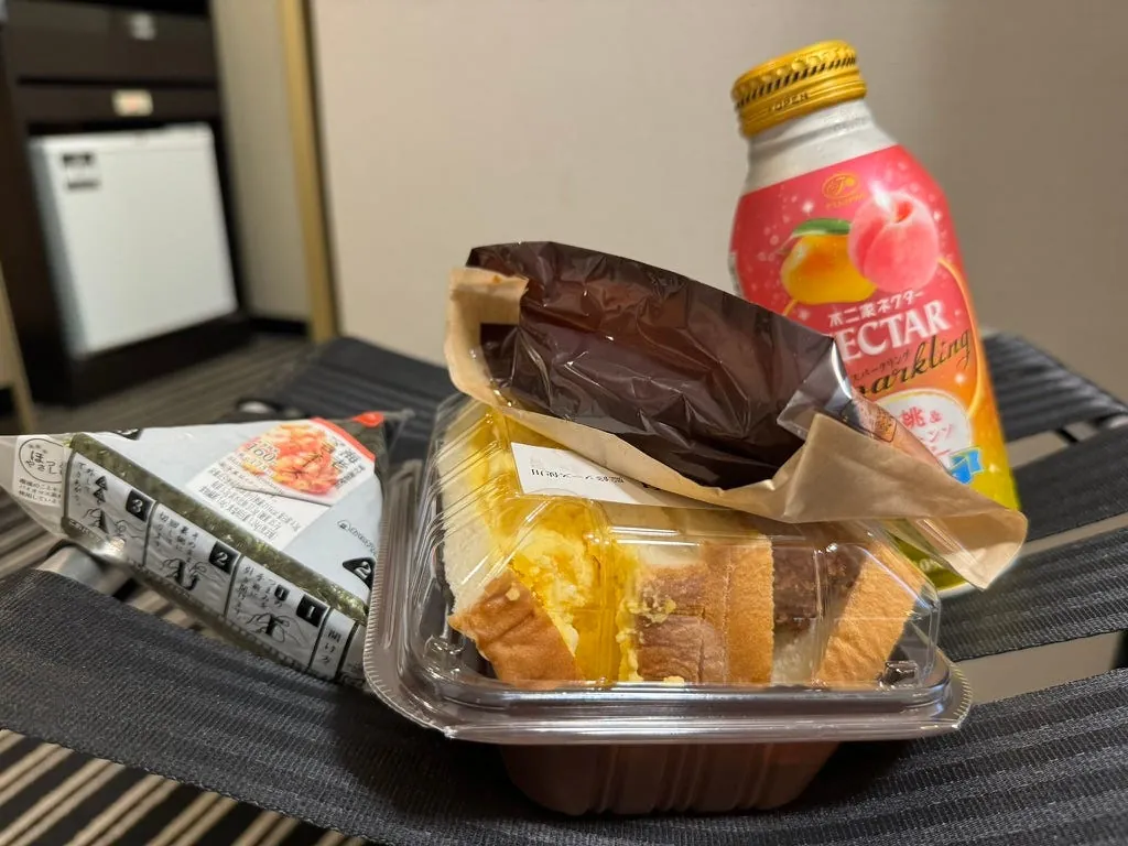 宵夜,日清咚兵卫豆皮泡面(这次来那么多天才第一次吃)、大分产的水果酒、超商鸡油炸鸡(Juicy 好吃)。