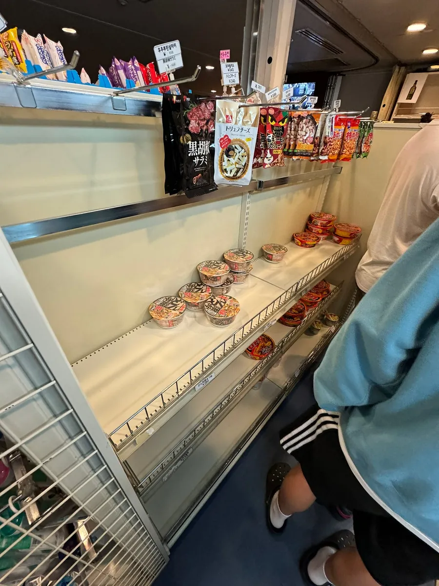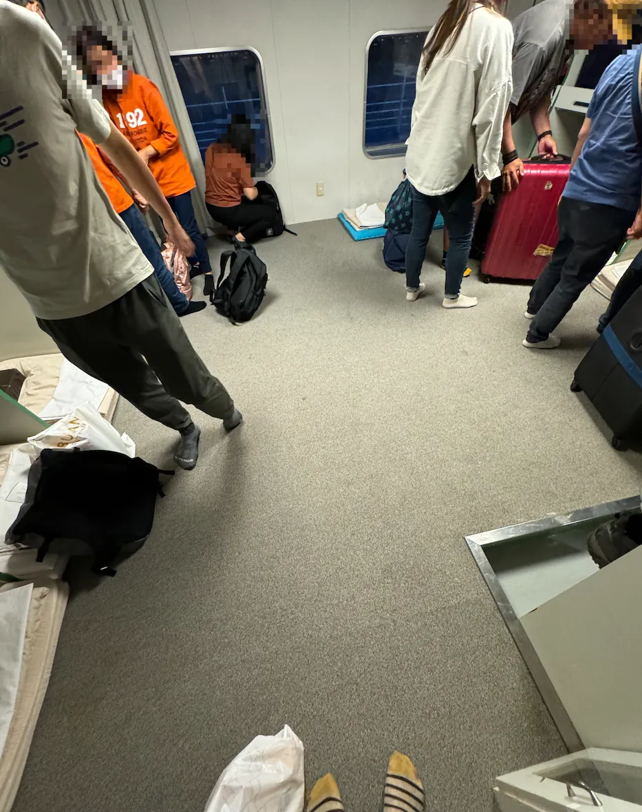 新山茶花号太晚订就只有经济通铺 (8–11 人男女混睡、只有日式公共澡堂、晚上 11 点熄灯)
