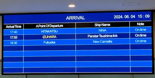 抵达:07:30 博多港国际航运总站