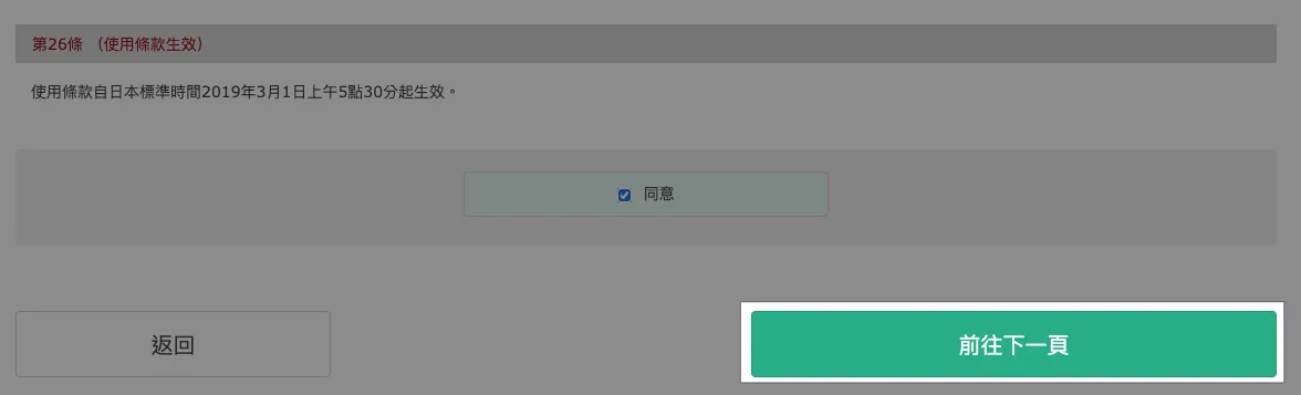 阅读并同意条款,点击「前往下一页」