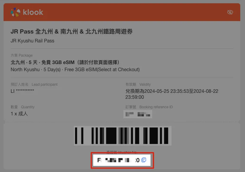 进入 KLOOK 查看 JR Pass 凭证,复制贴上以下凭证号。