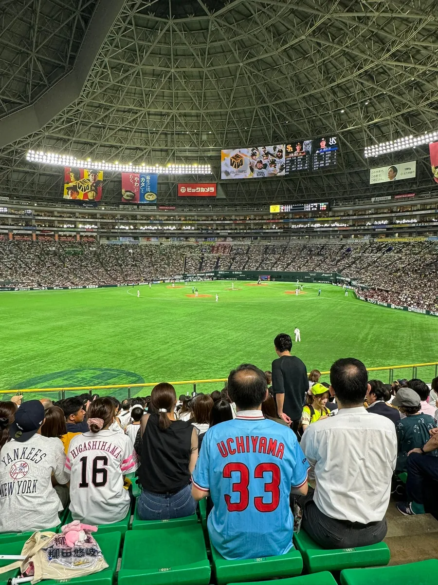 不的不佩服日本的职业运动风气,平日、晚上 18:00 球场座位约 40,000 个,几乎满场,再选位子的时候都没有整排空的或靠边边角落的位子。