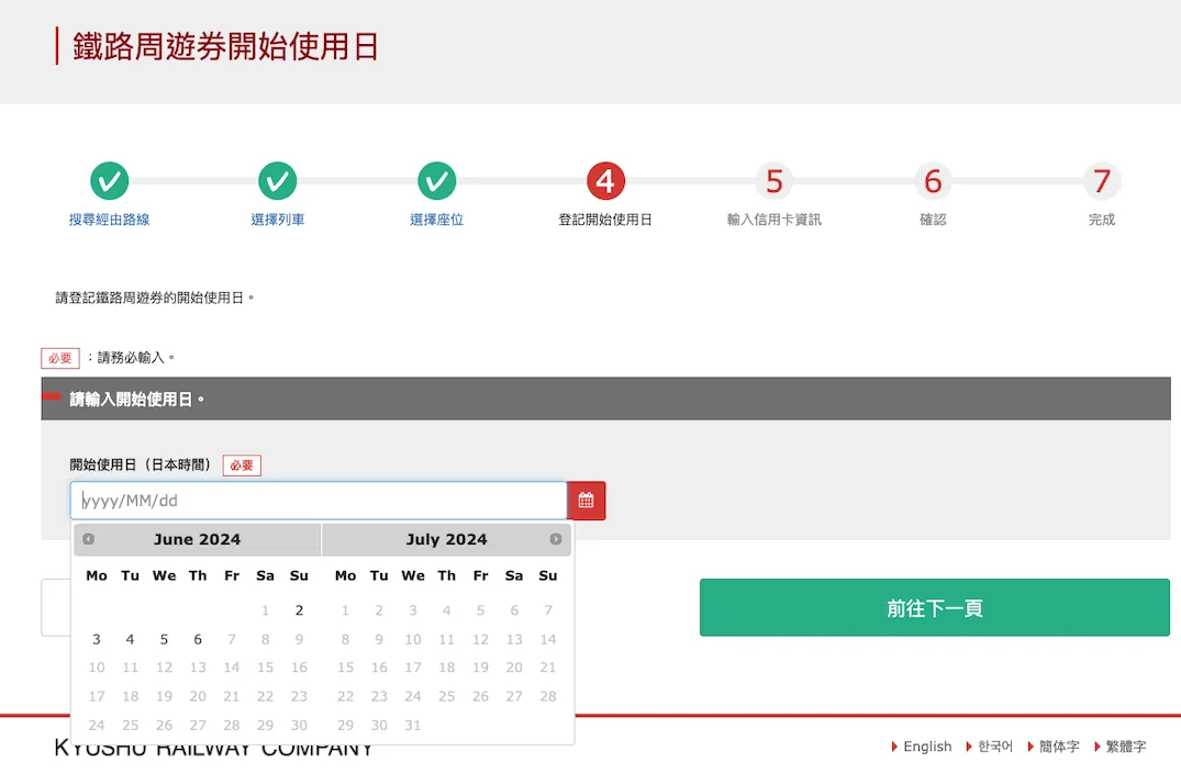 输入周游券开始使用日。