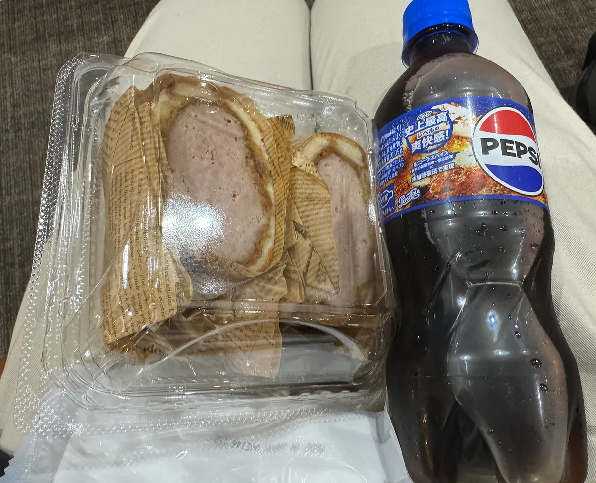 简单买个猪排三明治跟去投几罐生可乐、桃子水带回台湾。