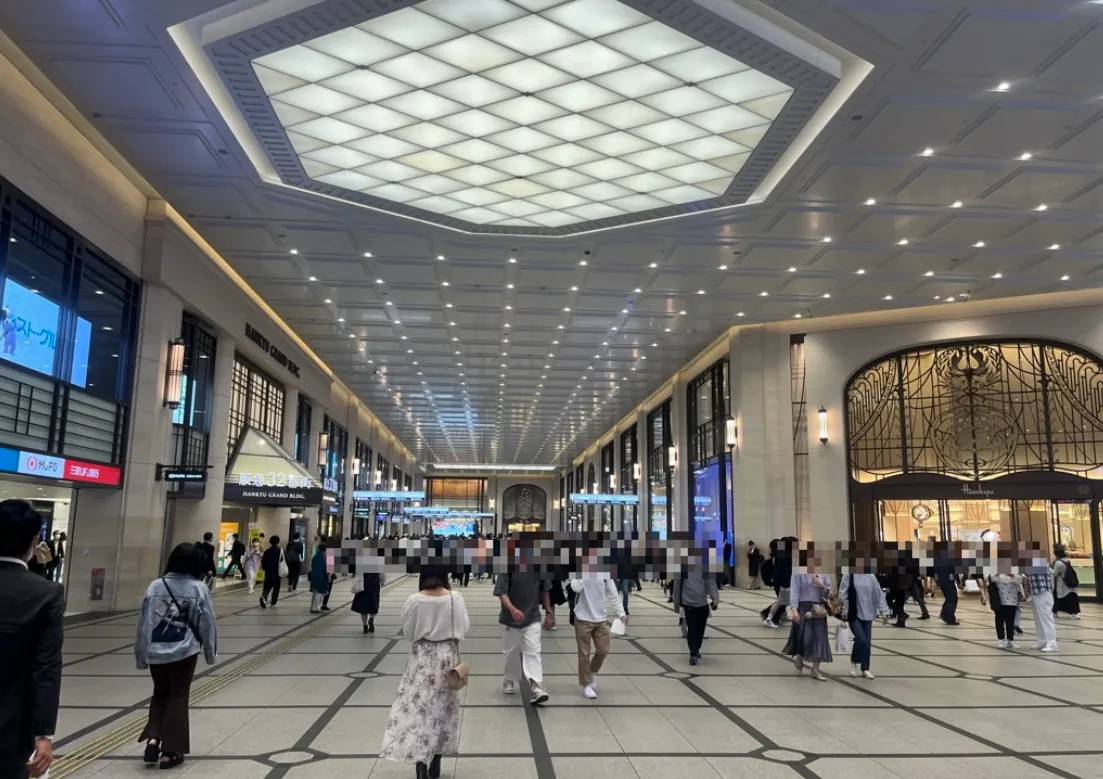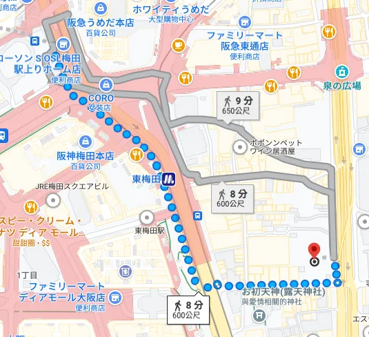 从大阪梅田车站出来走路大约 15 分钟会到: