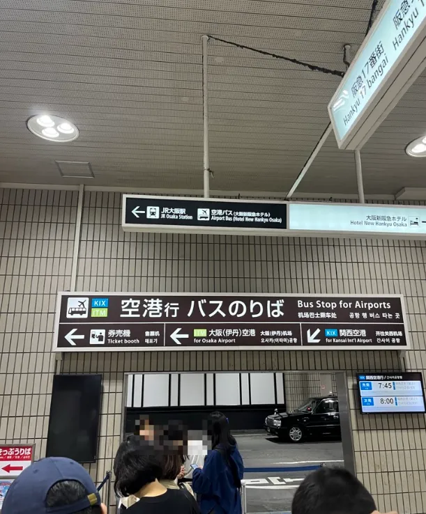本来打算搭电车到关西机场,但要拖著行李上上下下的;前 一天回来的时候特别探了一下搭客运的路线(包含时间跟车站位子) 一早就先去客运看人多不多,所幸排队的人不多,我们就买了到关西机场的客运车票,舒舒服服的搭客运直达关西机场了。