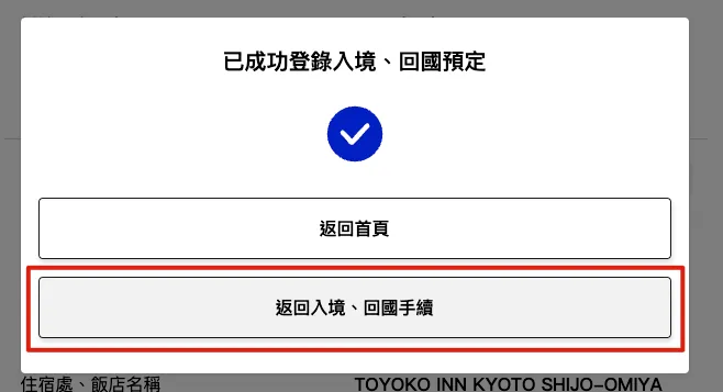 6.选择「返回入境、回国手续」继续填写资料