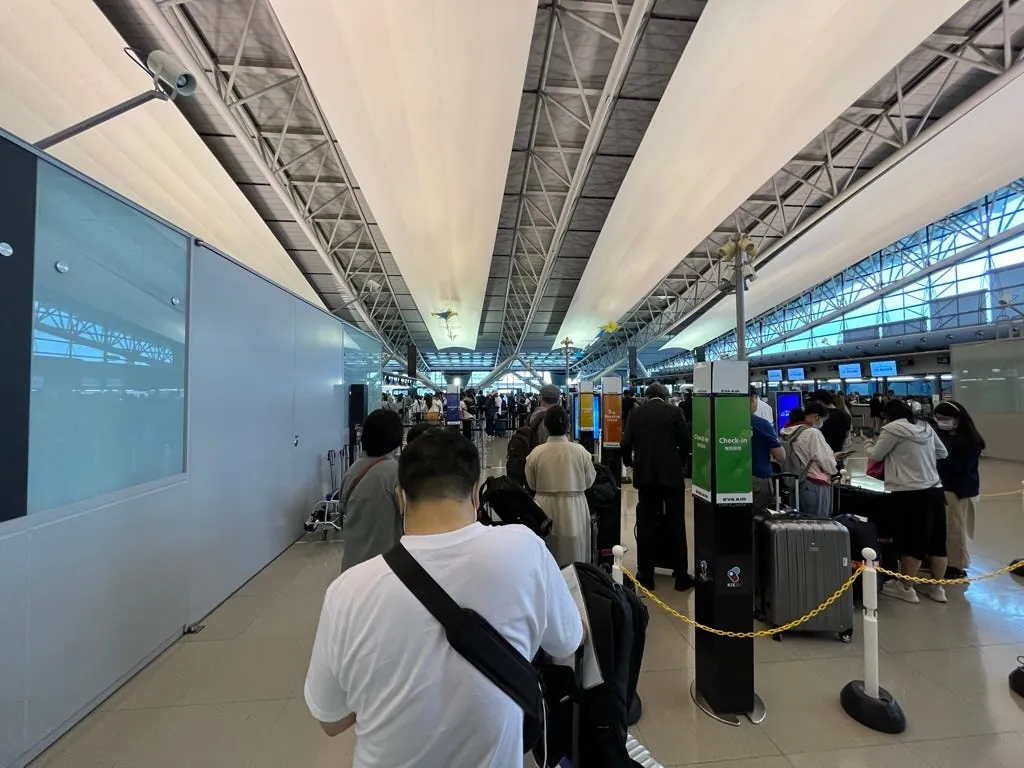其实很想跟排队的人说,你现在网页打开点一点领好电子机票,就能去排托运然后出境了。