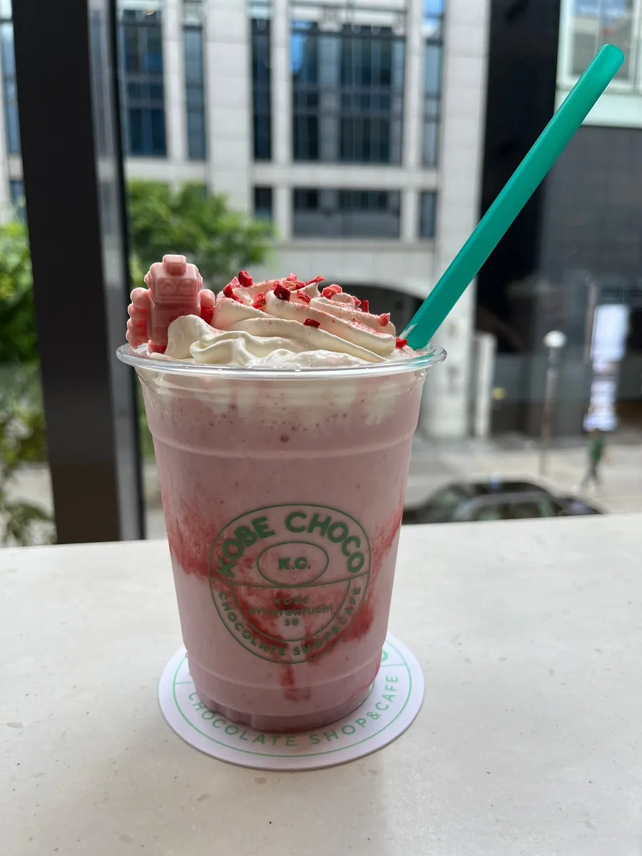 草莓巧克力奶昔冰沙,好喝但很甜。
