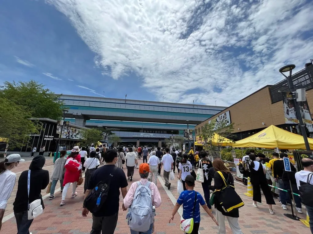 但我们吃了个闭门羹,不像台湾球赛都一定有位子,阪神的比赛卖到 7 月都全部售罄;都要提早就买好,不然只能在球场外面一日游了。
