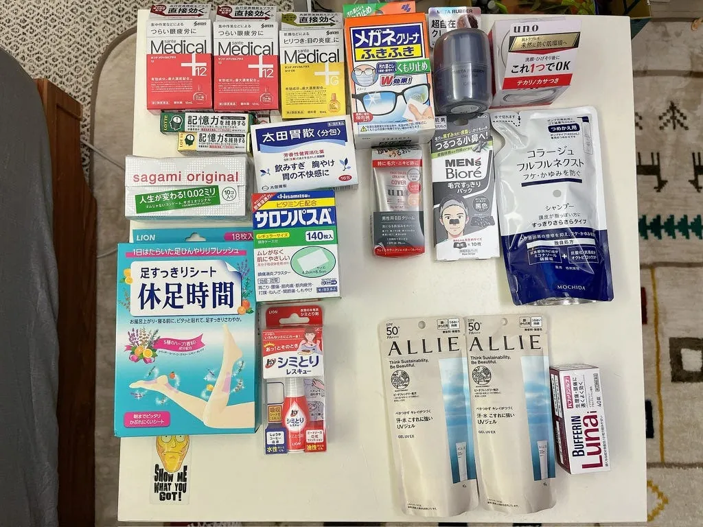 日本免税规定是要满 $5,000 日圆凭护照才能免税,会用塑胶袋封起来,回国才能拆封(以上是回家拍的,在境内拆封如果出境查到可能要补税,但感觉也没在查;但如果要合规定记得注意液体只能托运,如果封起来的东西里面有液体就只能整包托运)。