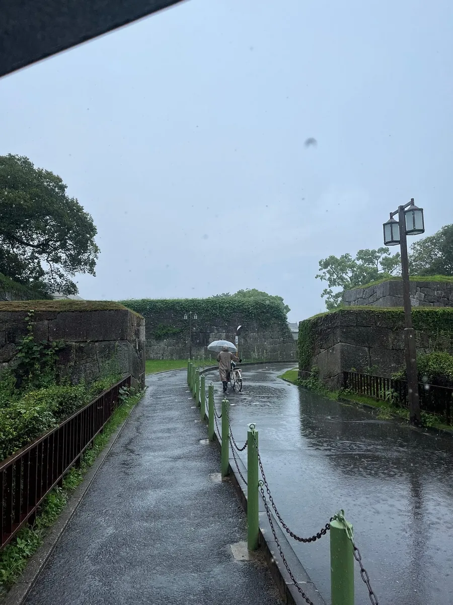 出车站发现外面正下起大雨,我没料到日本会下雨,没带雨伞;附近很空旷没看到超商,最后在名古屋城站地下街往对面名古屋市役所的 B1 找到全家超商,买了一只雨伞继续前往名古屋城!