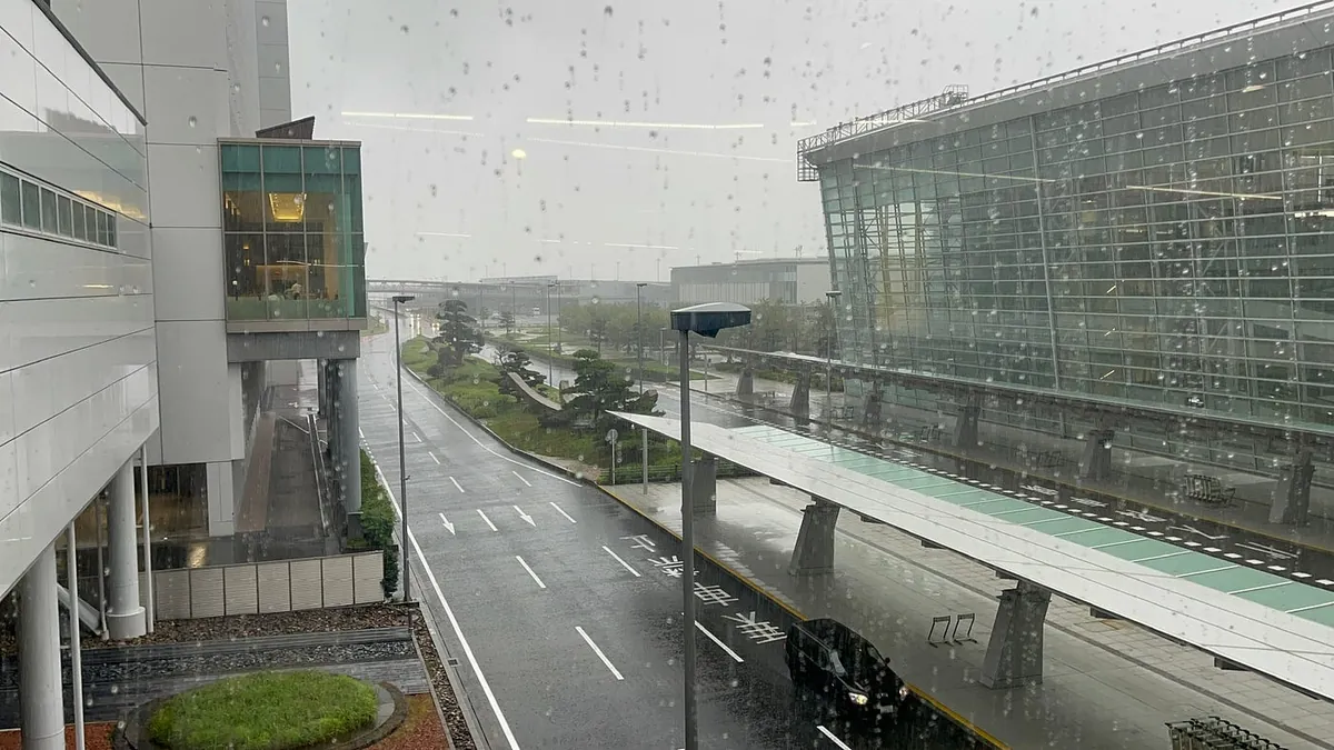可能是一大早+不需要提领行李,从飞机落地到入境只花不到 15 分钟;但是天空不作美,名古屋正在下大雨。