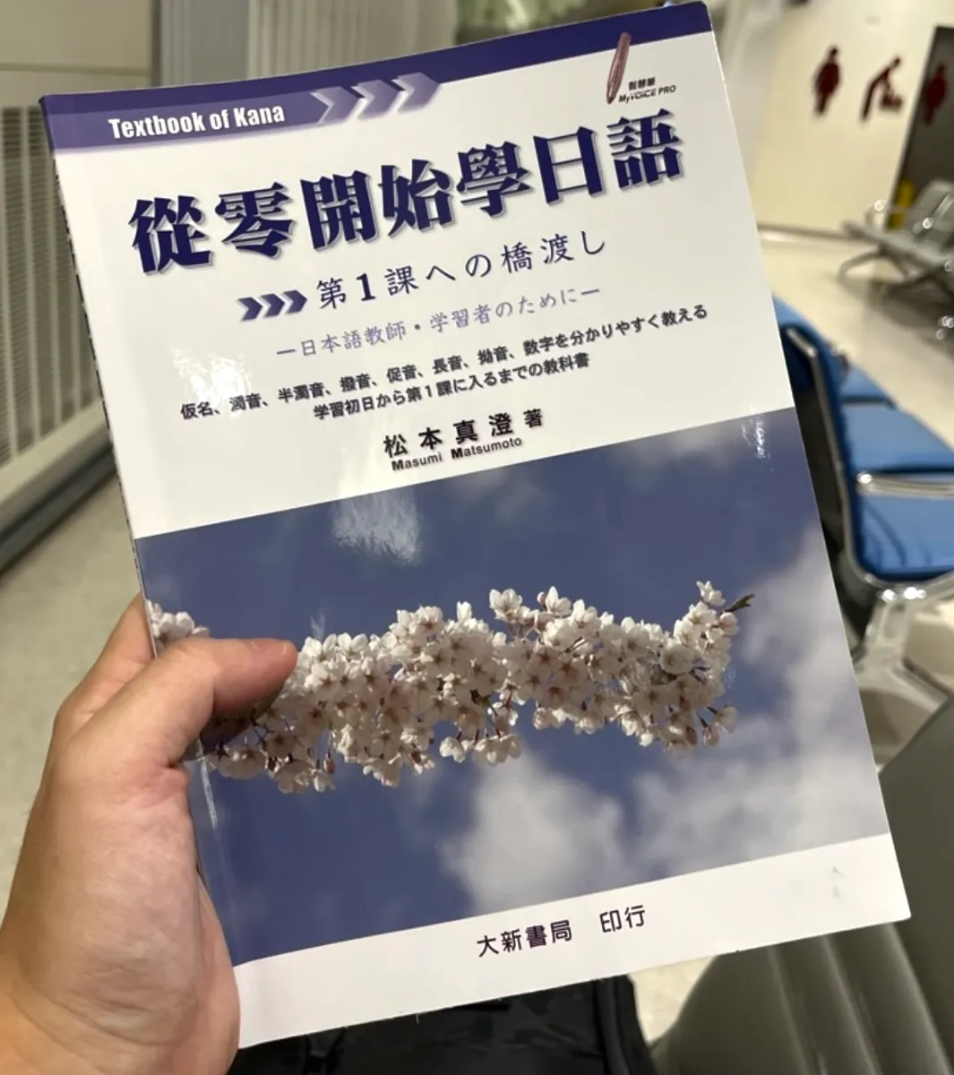 来的真的太早了,候机室没什么人;椅子是两个两个一组,很难躺著睡(很丑,我拍完照就起来了)、仰著睡也不舒服、还有候机室冷气很冷;不过那时候精神还算好,没什么睡意,后面时间越来越接近人也越来越多,吵杂声越来越大,就更难睡了;因此就只有闭目养神储存精力、翻翻日文基础(五十音),想说上飞机在睡一波。