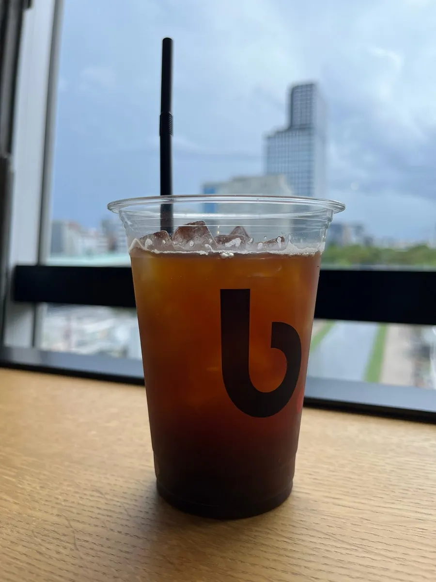 因为下雨外面的位子没开放,里面的位子爆满,就没有买一杯咖啡坐下来休息观景了;拍了照片就开始拍了几张照片就开始往下逛高岛屋百货,楼下有 Harbs 但需要排队。