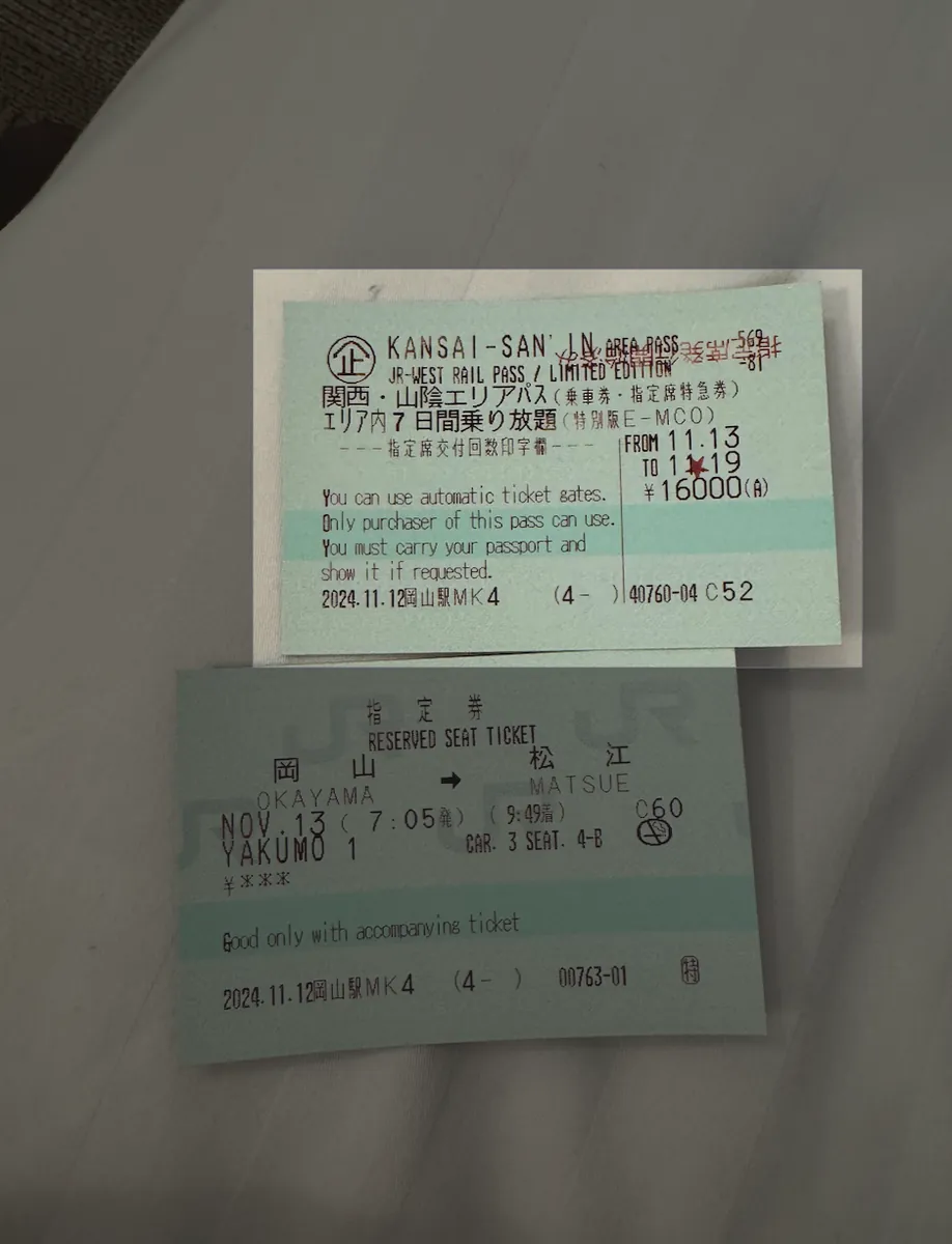 这次也是长距离移动,必买 JR Pass,本来还怕只有山阴、山阳 JRass,没想到日本 JR 很贴心的把有可能的路线都规划好了,有「 关西&山阴地区铁路周游券 JRPass 」正合我意!