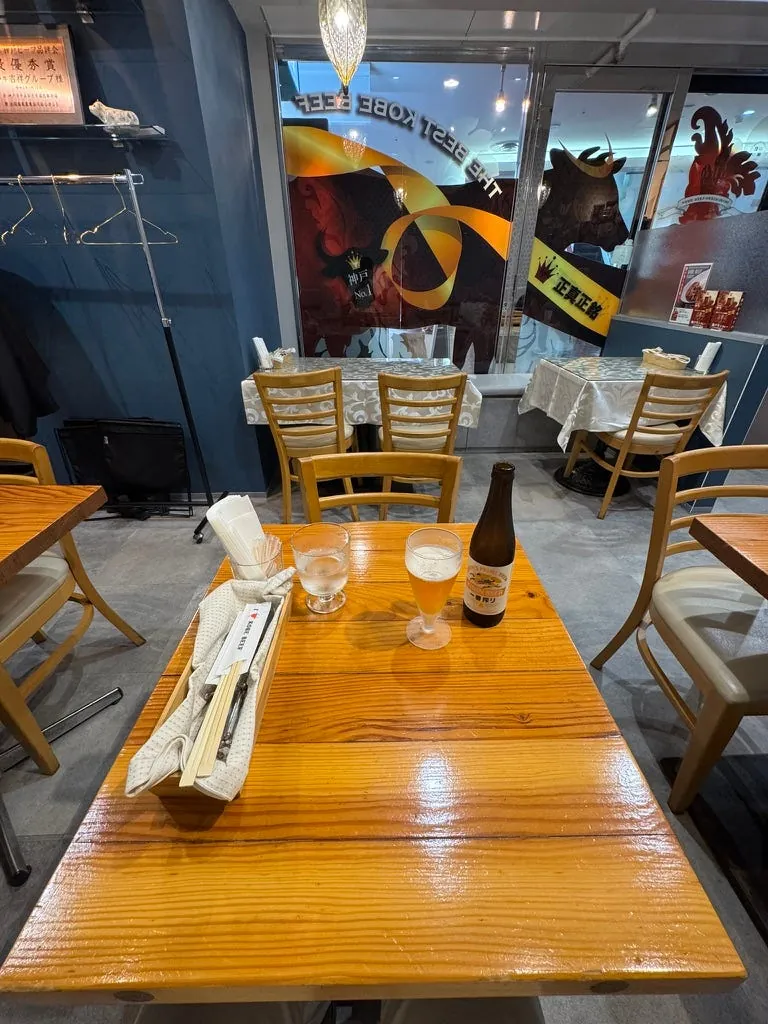 点了一份铁板猪排定食(200g)跟生啤。最后付 2,178 日圆