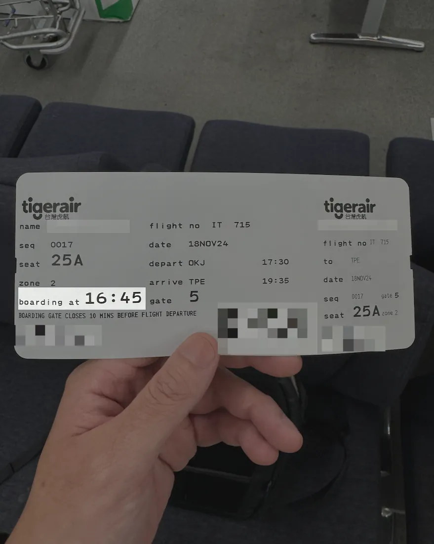 时间还非常早,今年搭的是 17:30 起飞的航班、去年是搭 15:25 的这个时间来刚刚好,17:30 起飞的现在来要干等快 4 个小时。