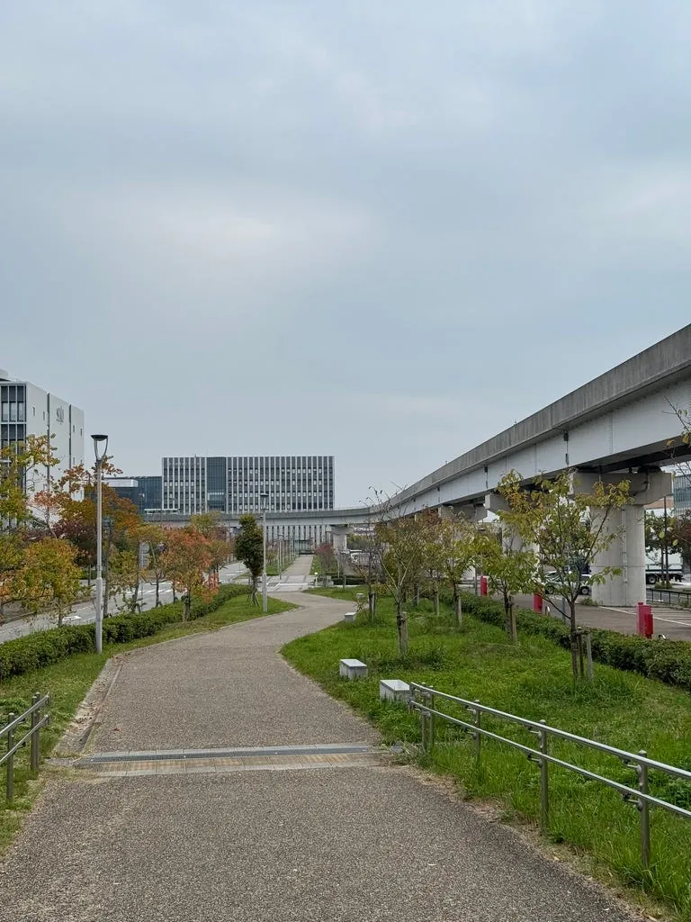 在机场附近乱晃,机场外有一个缩小版的冈山后乐园还有很红的枫叶。