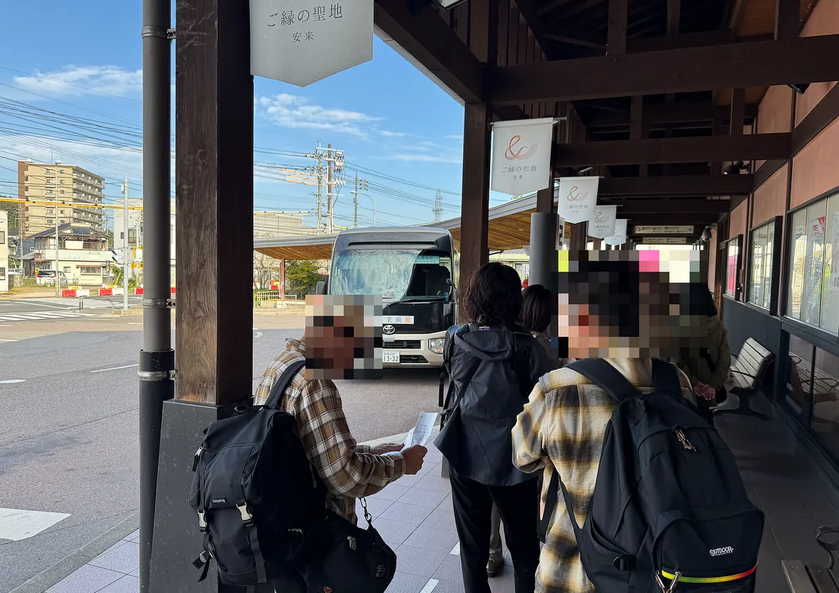 可以直接刷交通卡上下车(Suica) 或是去候车亭里面投币买票。