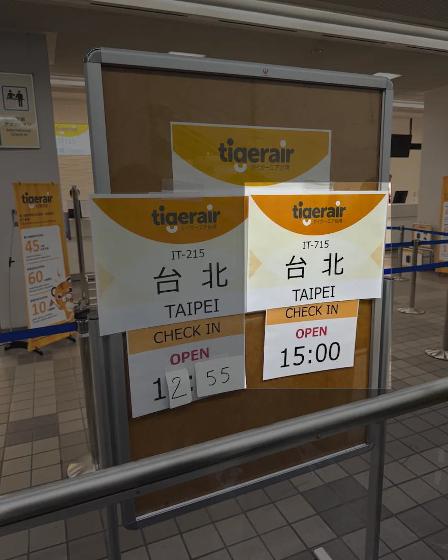 今年没有特别抢虎航秋季活动机票, 去年有买到优惠机票 时间比较好又比较便宜( 去年:去(11:10)、回(15:25),含来回 20KG 托运+选位+杂费:NT$ 7,012 )。