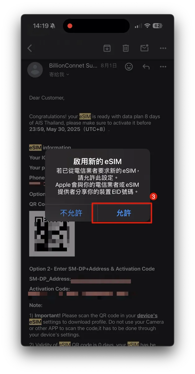 ⚠️eSIM 启用会需要连接网路⚠️