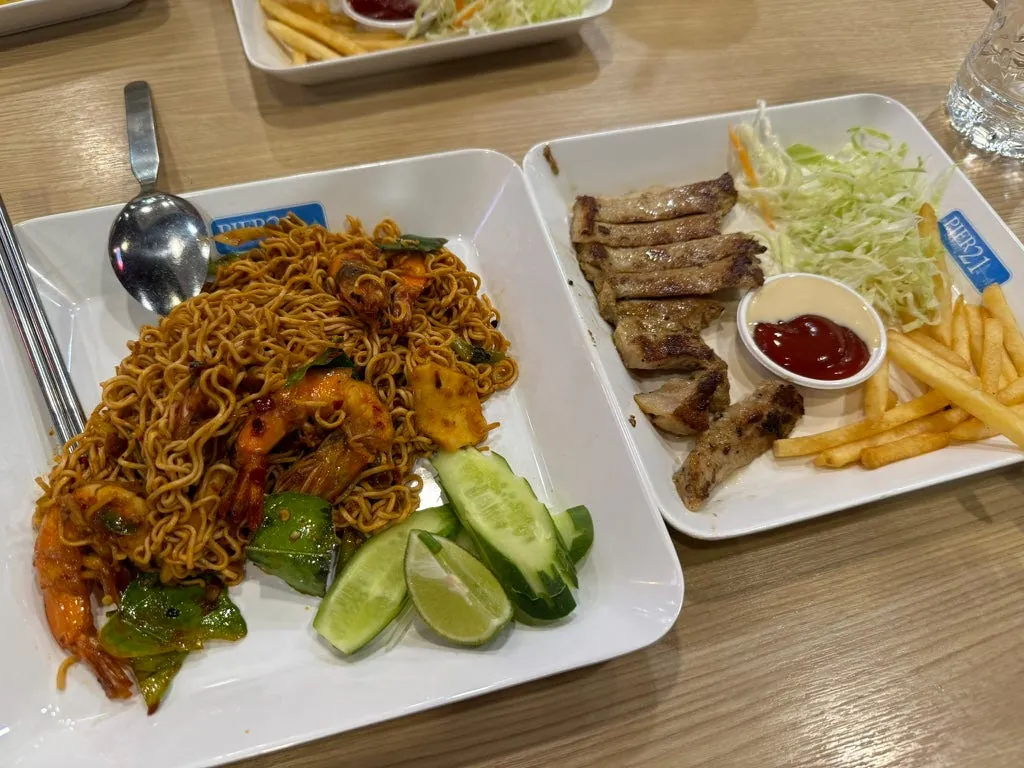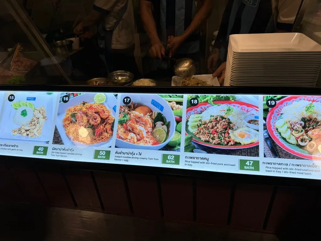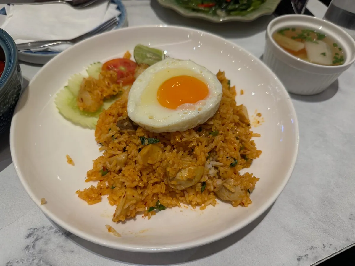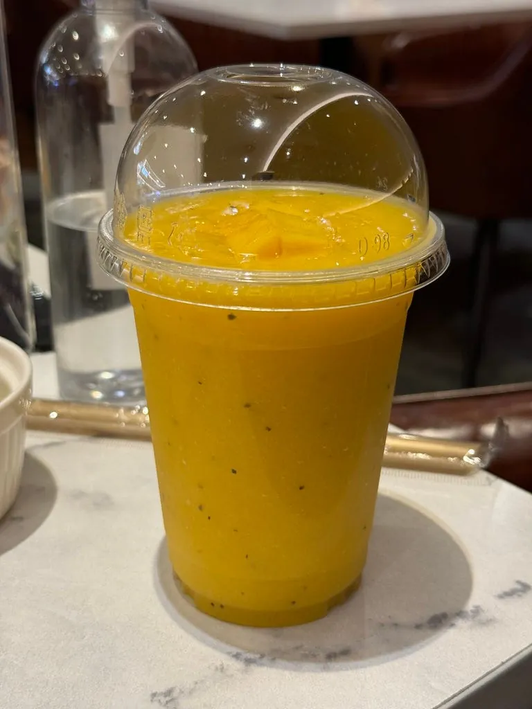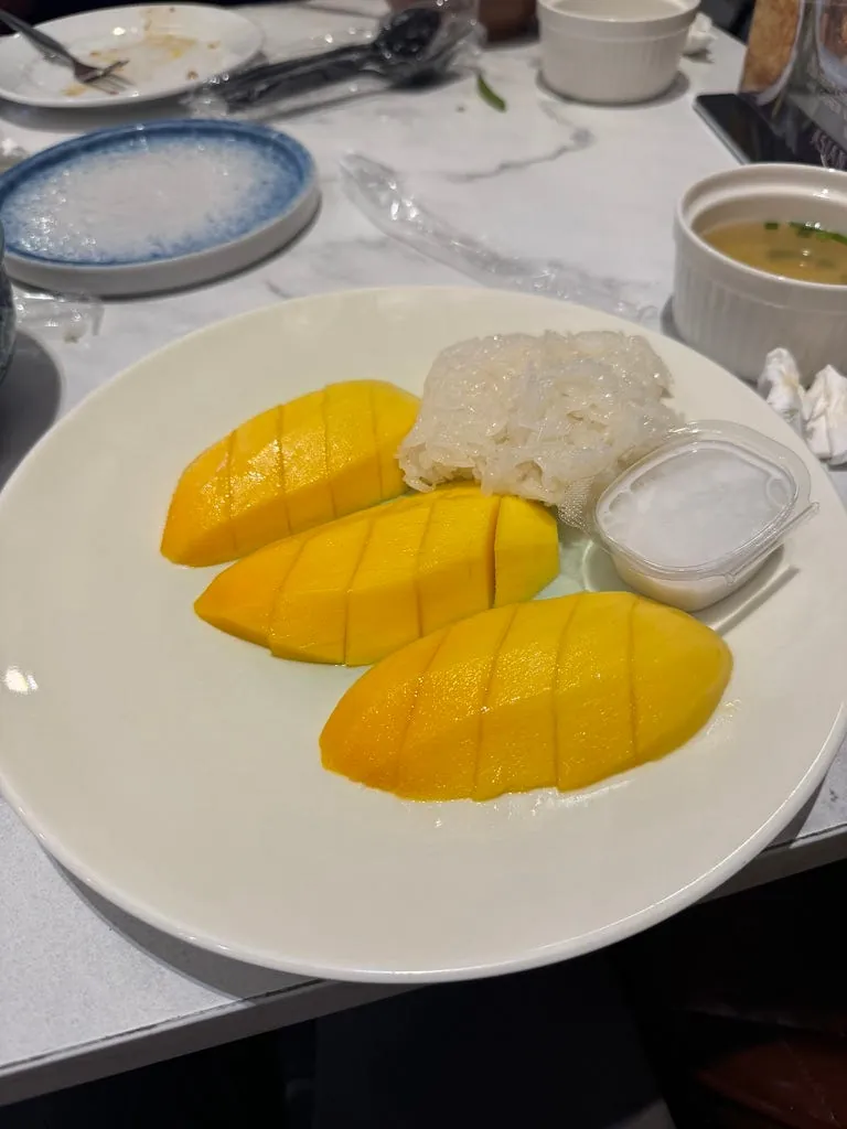 出境、安检完,大概还有一小时可以吃东西;找了间泰式餐厅吃了泰国的最后一餐。(海鲜炒饭、芒果汁、芒果糯米饭)。