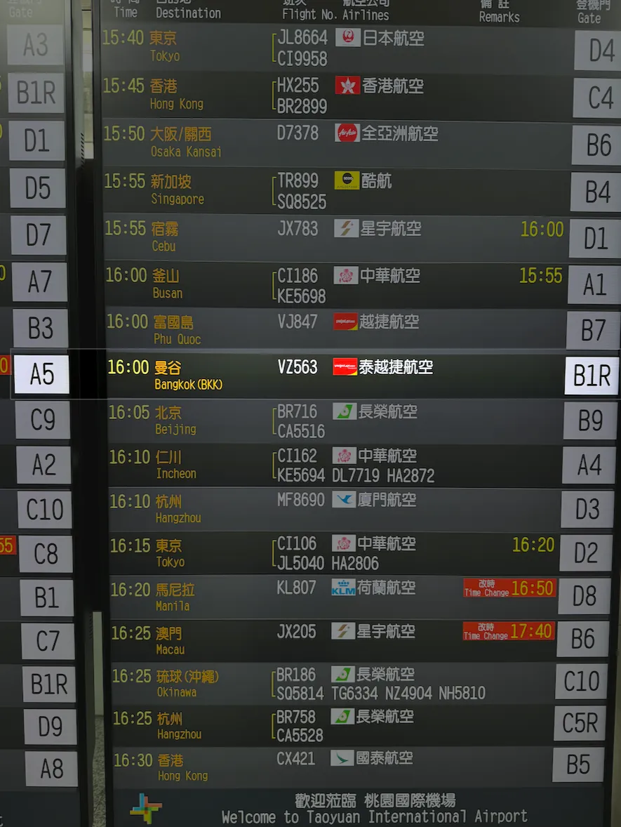 不知道是不是廉航的原因,资讯没更新(一直显示 16:00,实际已变更到 16:35)。