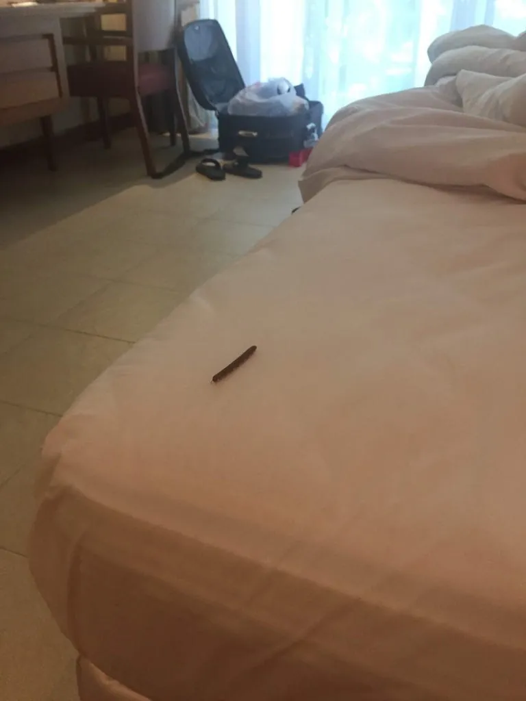 饭店照片没拍几张,只拍了一张早上醒来发现被子里有一只大马陆的惊吓照。