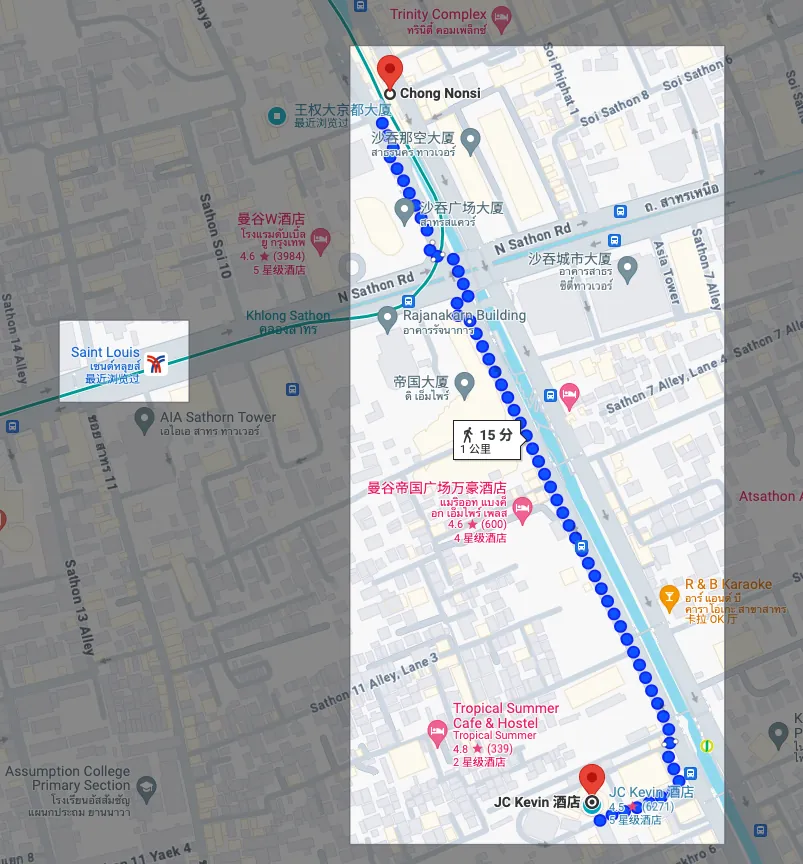 交通:从地图看距离最近 BTS Chong Nonsi 站 1 公里约 15 分钟。