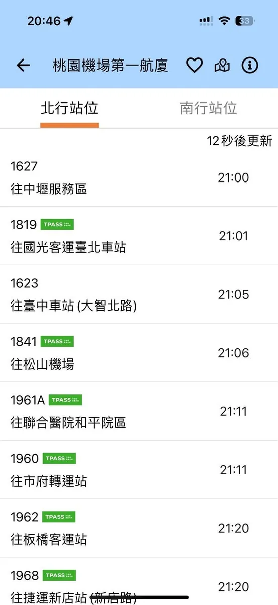到 TPE 台湾桃园国际机场,领完行李出来后约 20:45,直接去搭 1841 or 1819 国光客运回台北,不需转来转去很方便~